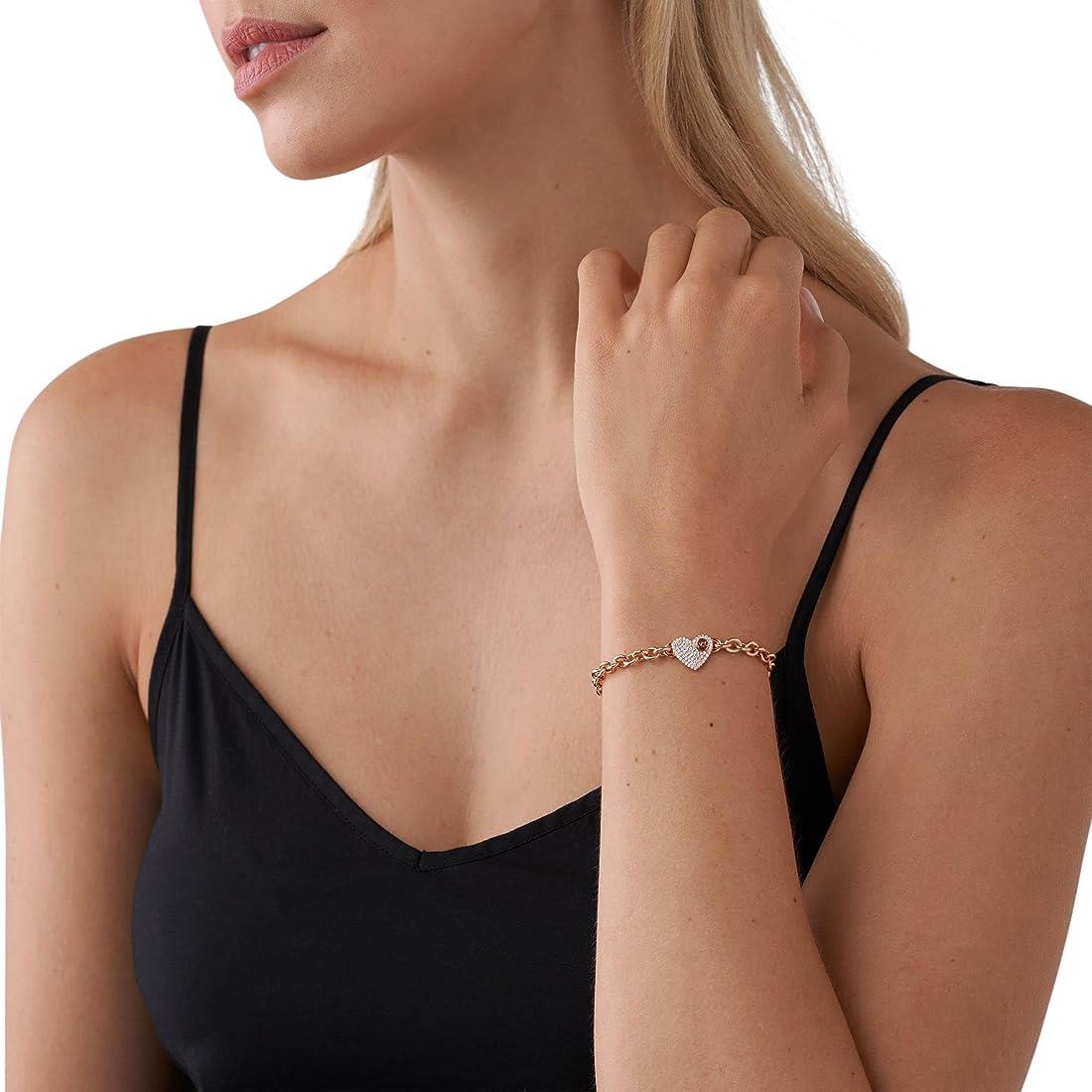 Bracciale con ciondolo a cuore da donna Michael Kors Premium in argento trattamento IP oro rosa con zirconi. Lunghezza 21 cm