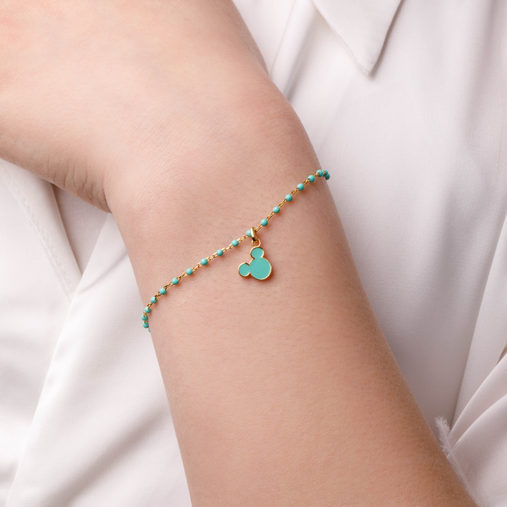 Bracciale da bambina della collezione Mickey Mouse di Disney.Gioiello in argento 925 e smalto di colore blu chiaro. Misura: 14+3 CM