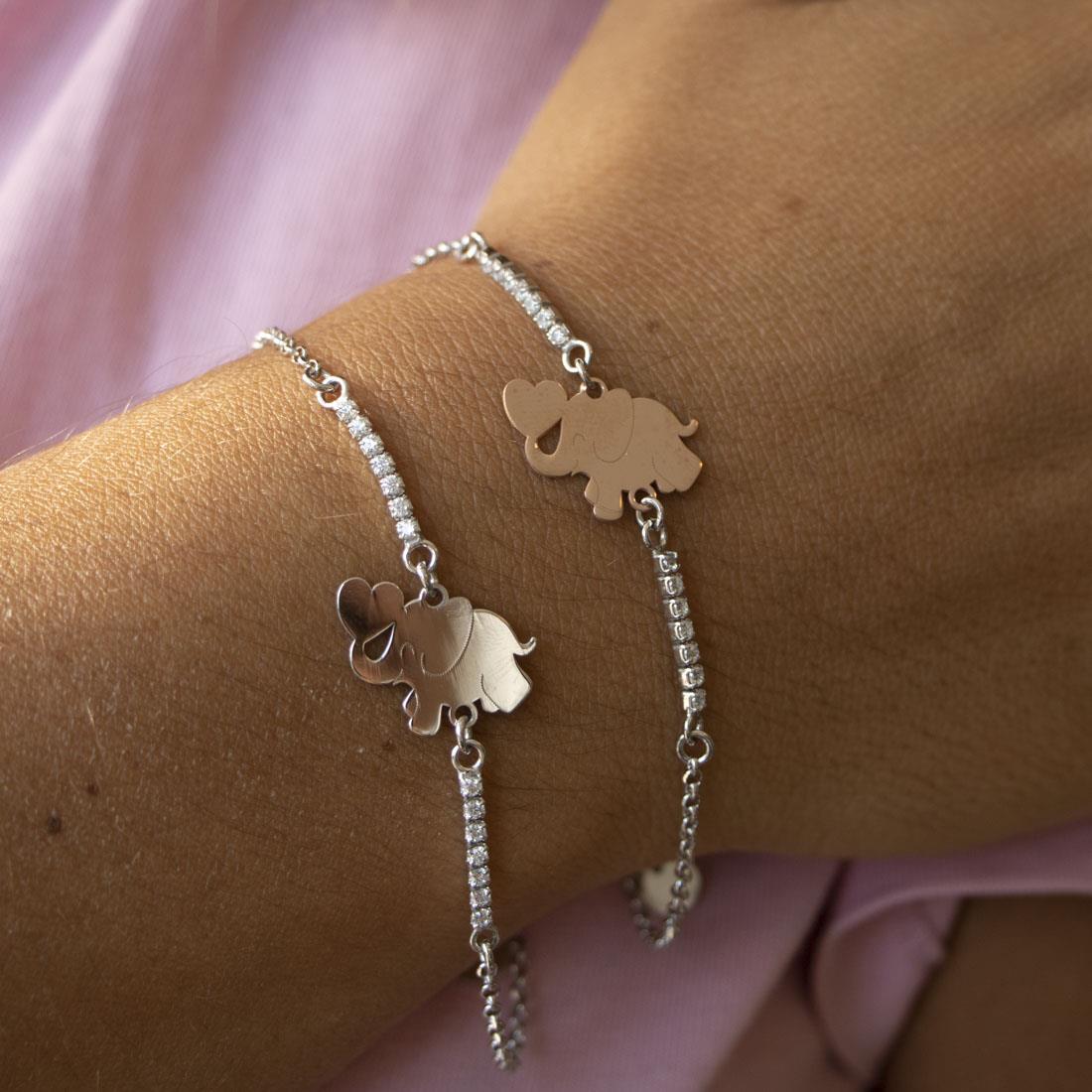Bracciale Oro&Co925 in argento con charm elefantino e zirconi.