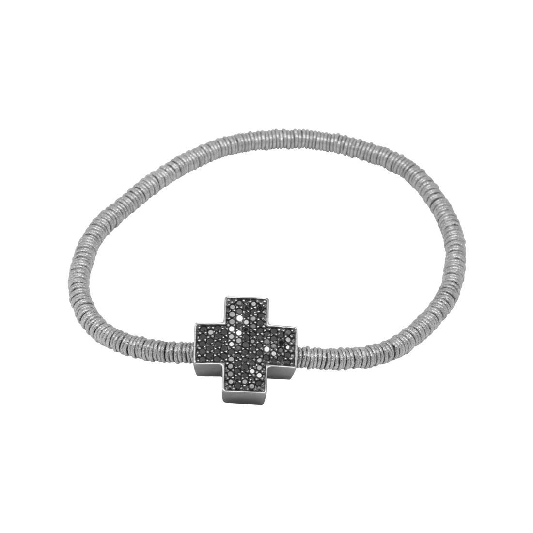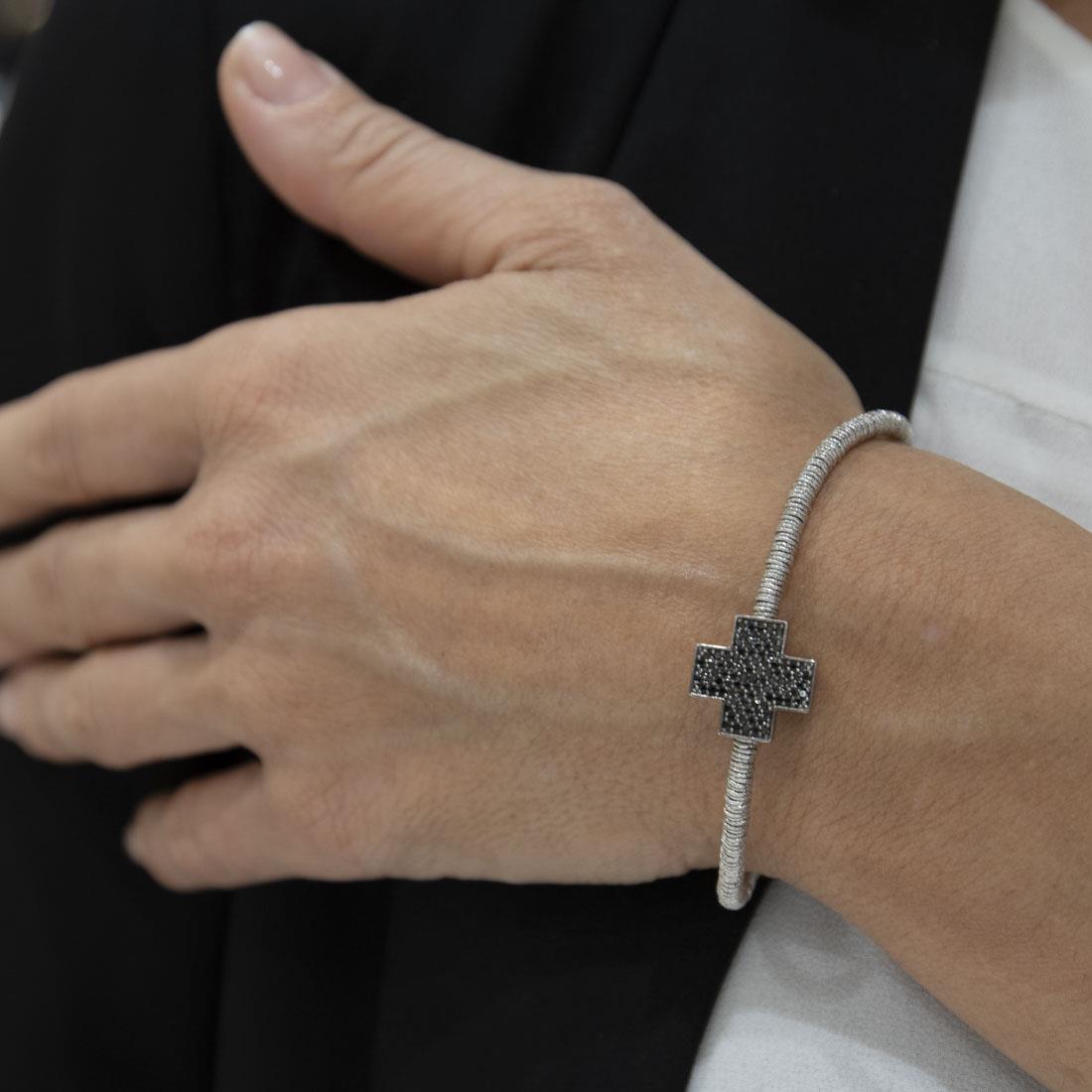Bracciale Roberto Demeglio Joy in oro bianco con croce in diamanti neri