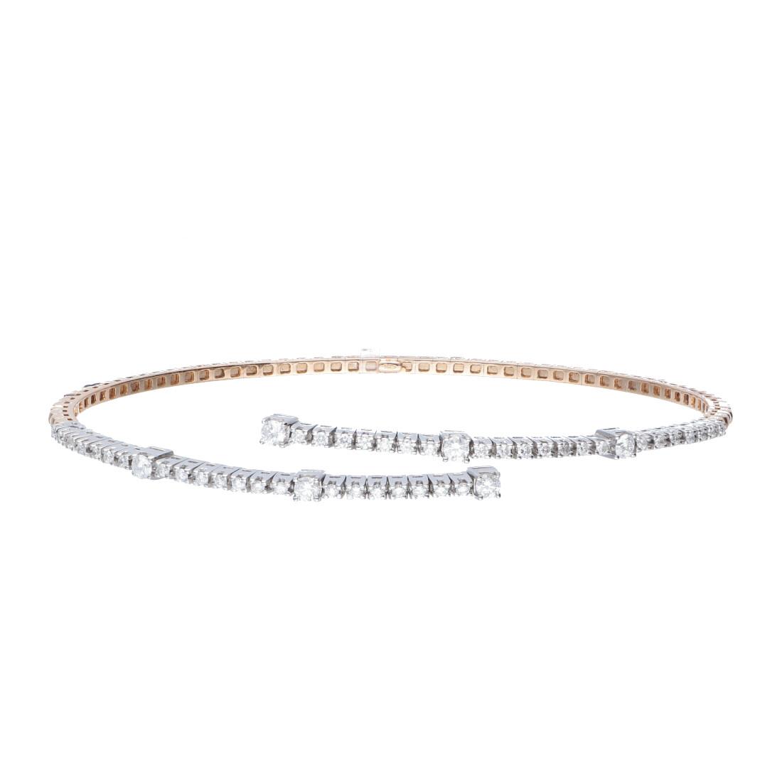 Bracciale in oro bianco e giallo semirigido con diamanti