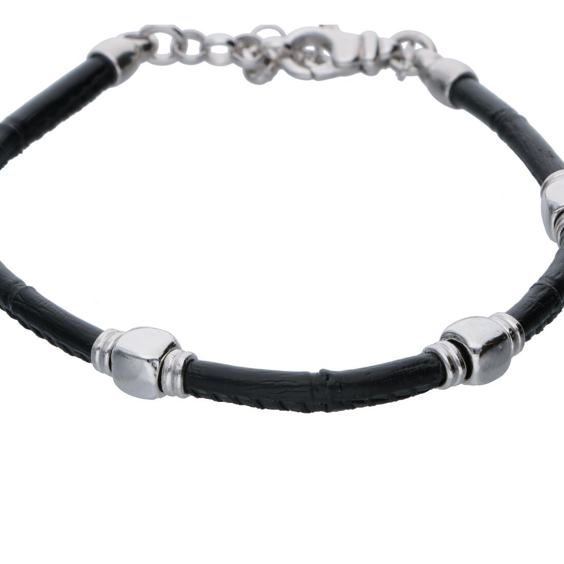 Bracciale in pelle con elementi in argento, misura 17 regolabile+ - ORO&CO 925