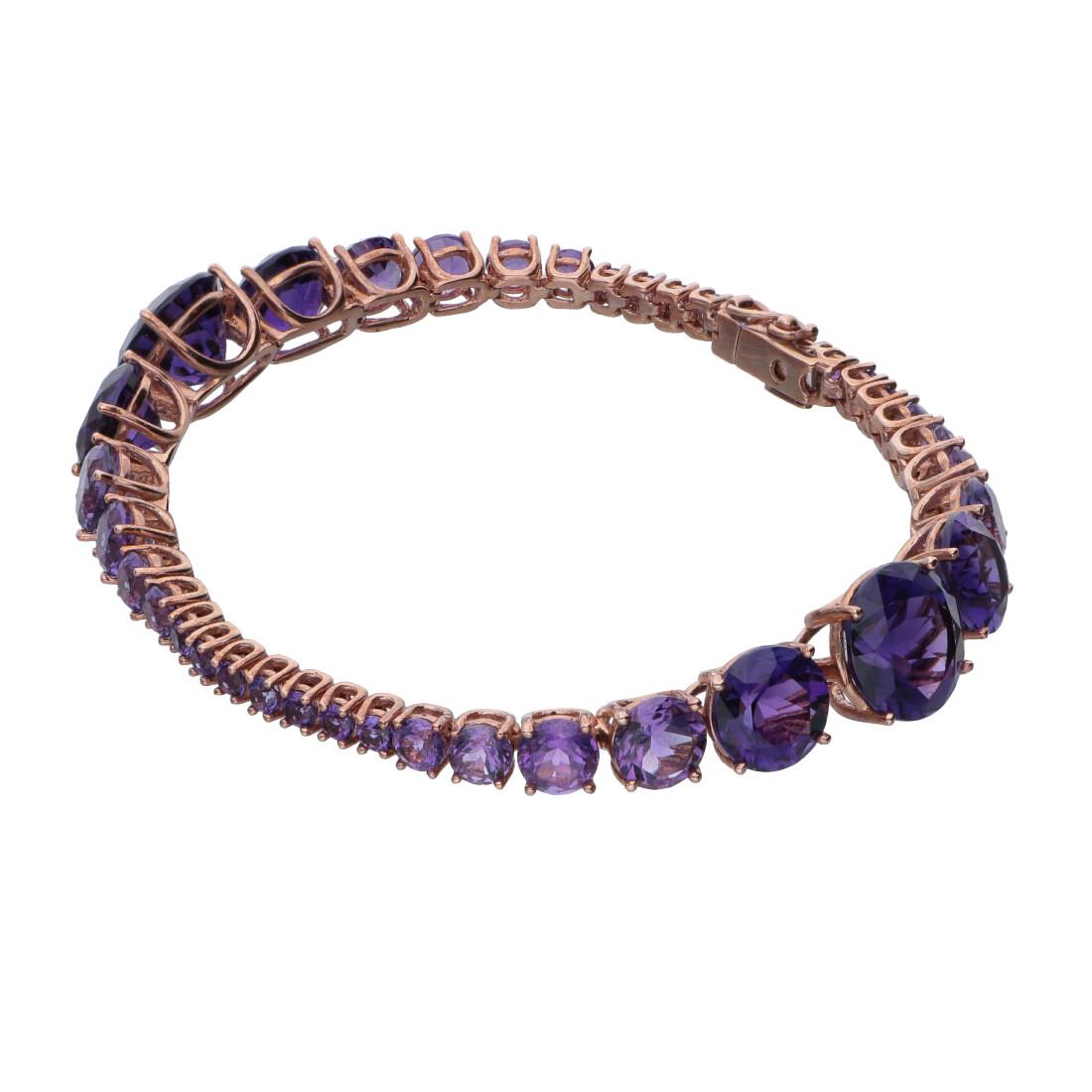 Bracciale tennis Roberto Demeglio in oro rosa 9kt con ametiste ct. 24,79.
