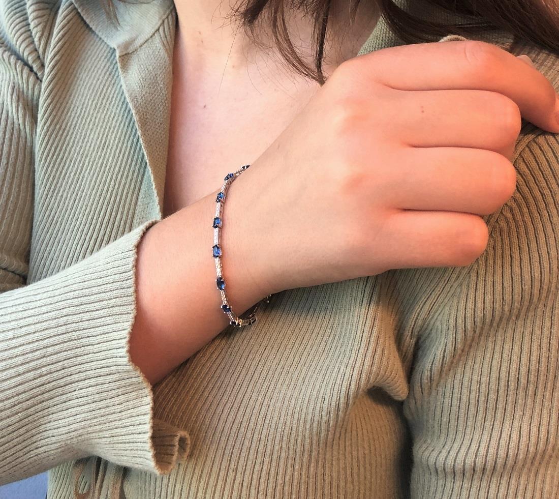 Bracciale tennis con zirconi bianchi e blu - ORO&CO 925