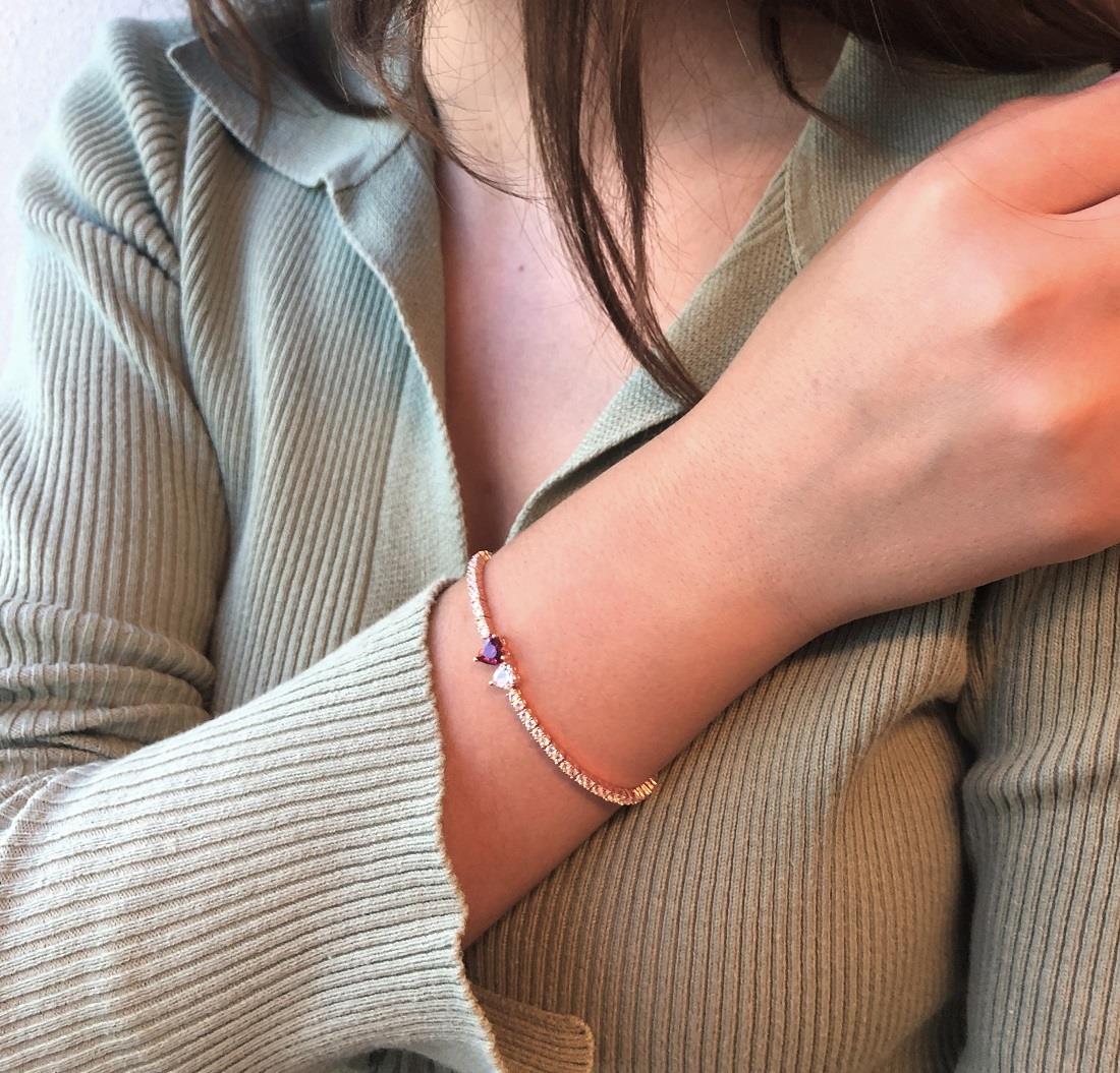 Bracciale tennis con zirconi bianchi e rosso - ORO&CO 925