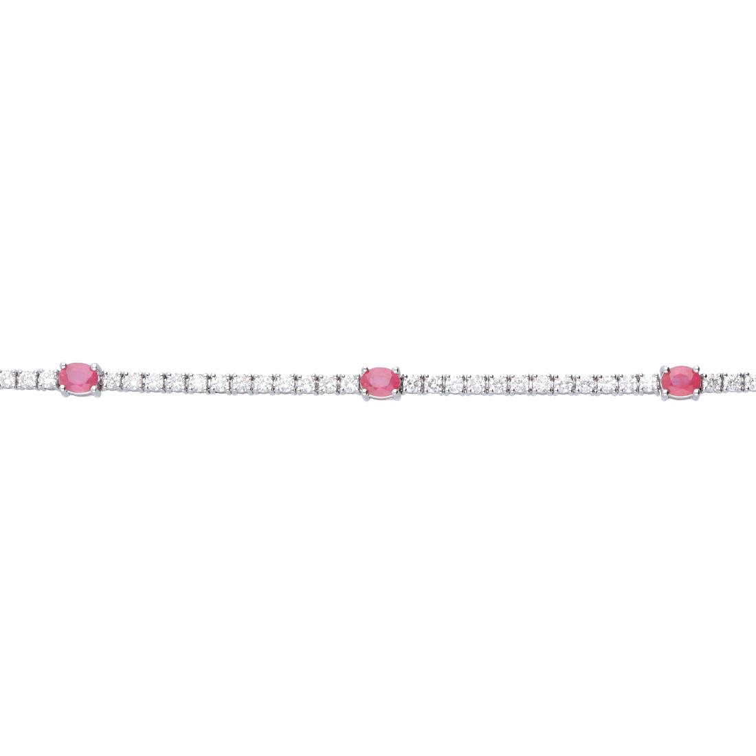 Bracciale tennis Alfieri & St. John in oro bianco 18kt con diamanti ct 1.60 e rubini 1.10. Lunghezza 18 cm.