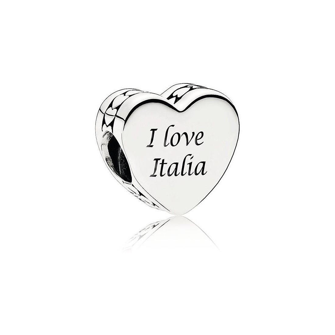 Charm Pandora I Love Italia in argento a forma di cuore con scritta incisa "I love Italia"