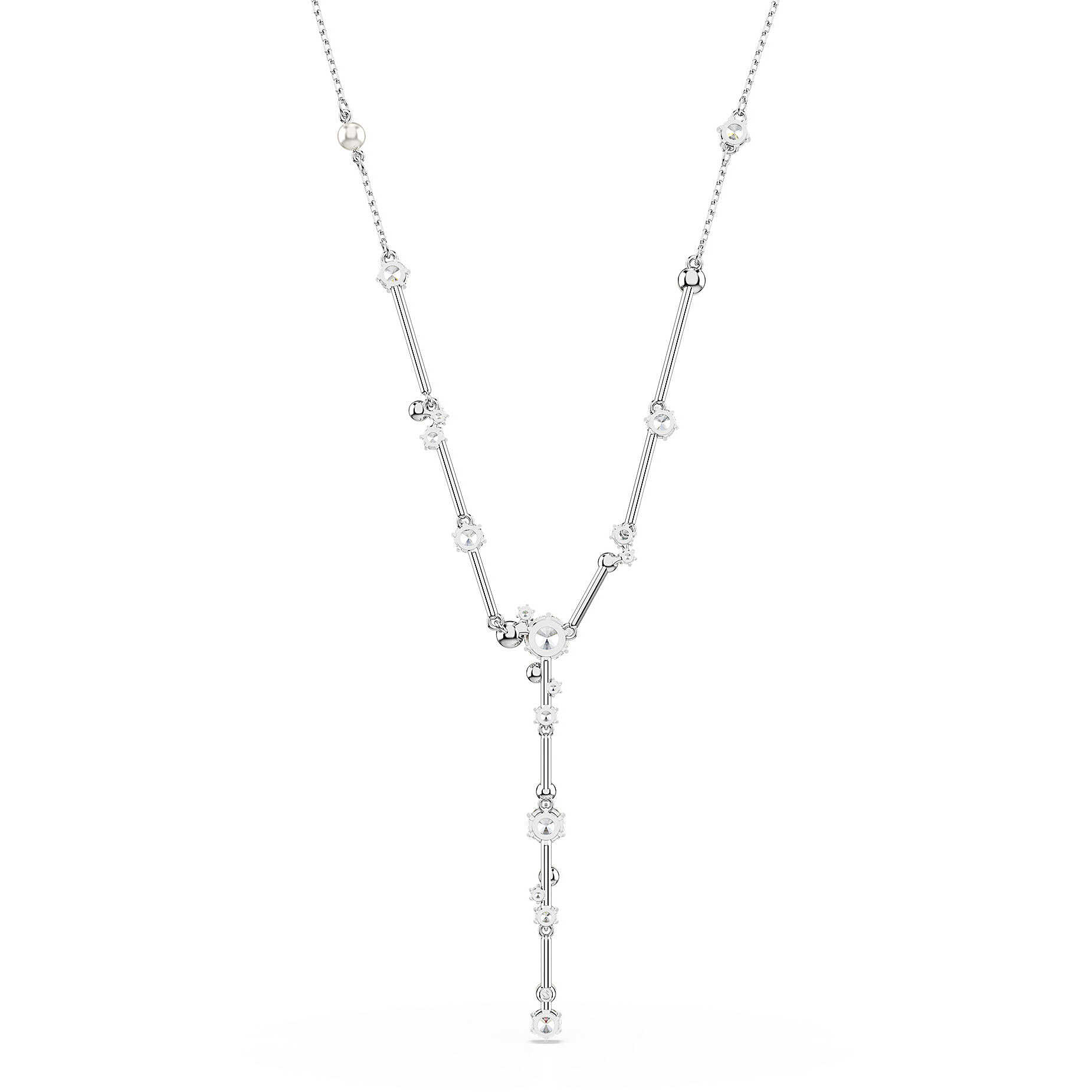 Collana da donna di Swarovski della collezione Constella. Creando una propria costellazione di luce e meraviglia, questa splendida collana a Y è lo specchio perfetto delle stelle. Il design di grande ispirazione presenta un gruppo di Swarovski Zirconia e Crystal Pearls Swarovski di diverse dimensioni, che sembrano fluttuare tra le barrette metalliche del gioiello.