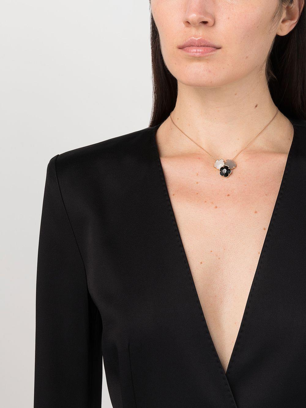 Collana Pasquale Bruni Bouquet Lunaire in Oro Rosa con Pietra di Luna Grigia e Bianca, Onice e Diamanti ct. 0,04. Misura fiore 12mm, Lunghezza 42 cm