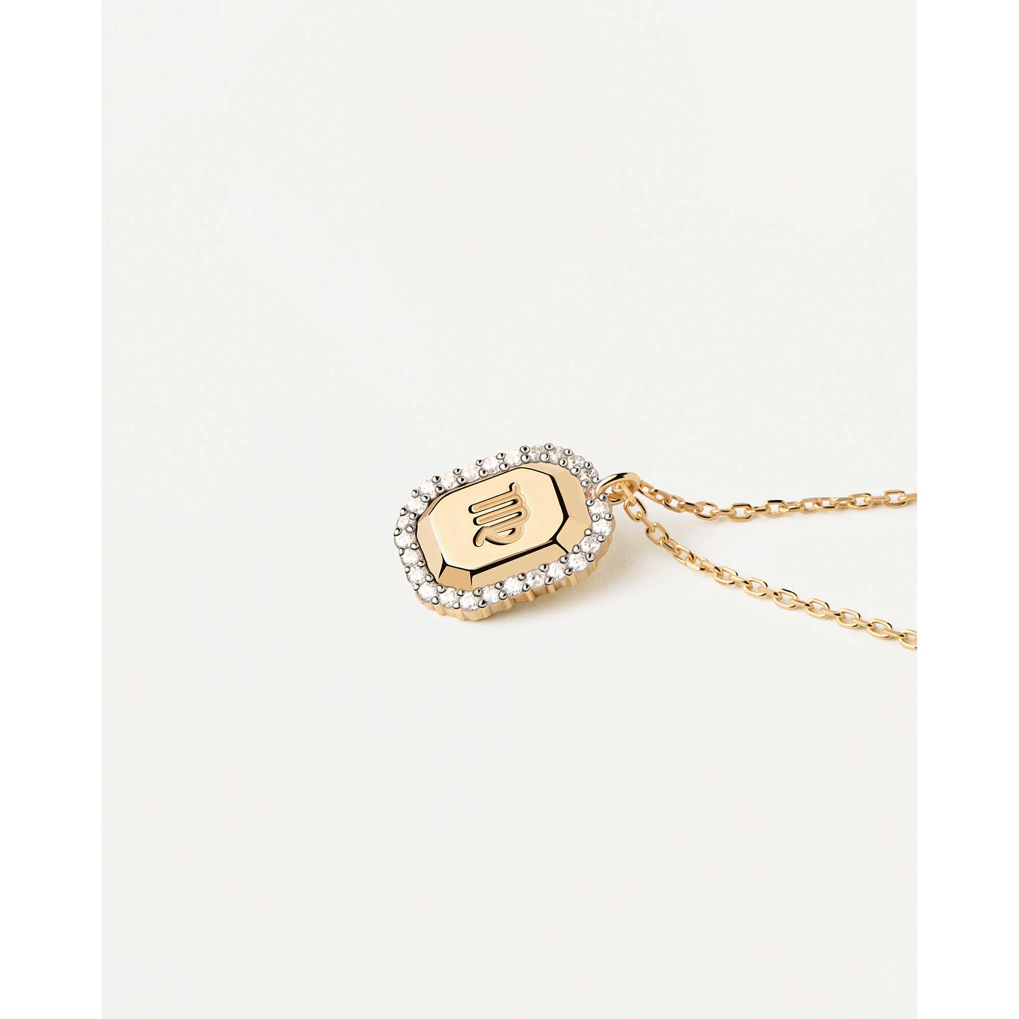 Collana PDPaola in argento placcato oro giallo 18kt e pendente con simbolo della vergine con zirconi bianchi.