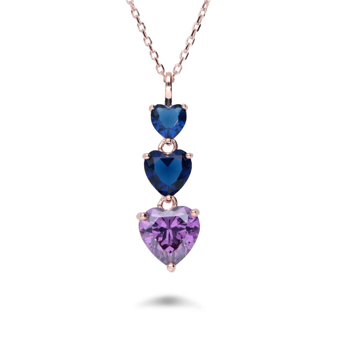 Collana argento con tris cuori blu e viola - ORO&CO 925