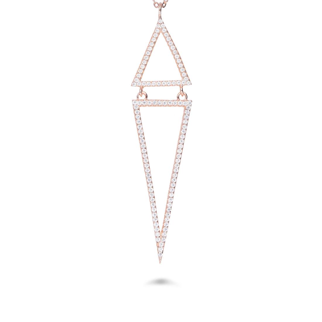 Collana Oro&Co 925 in argento rosato con due trinagoli con zirconi bianchi. Lunghezza 44,5 cm