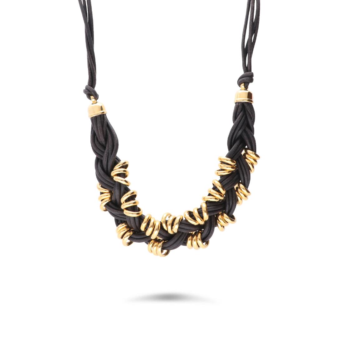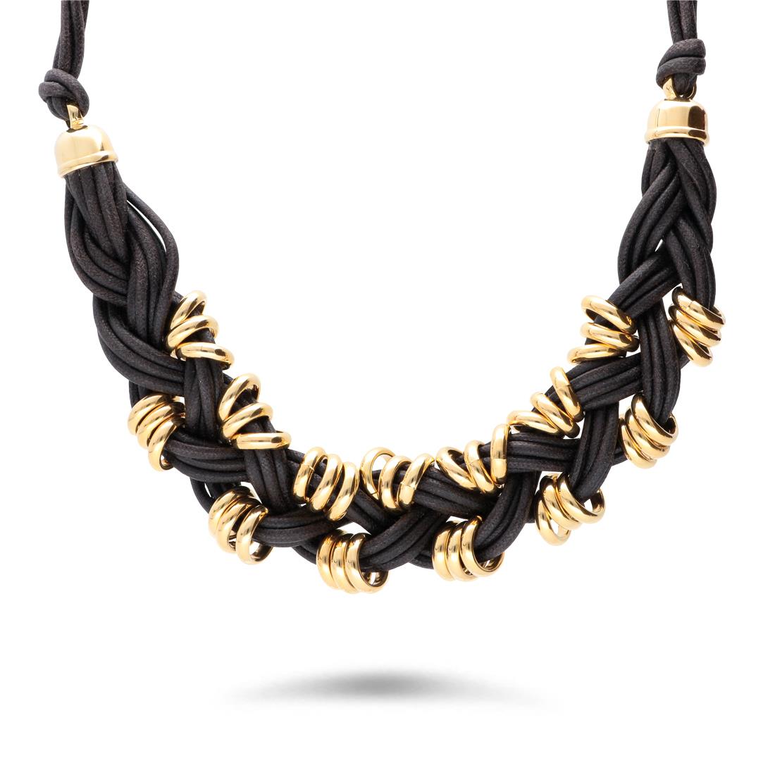 Collana design Toscana by Etrusca con cotone cerato marrone e bronzo placcato oro 18 ct.