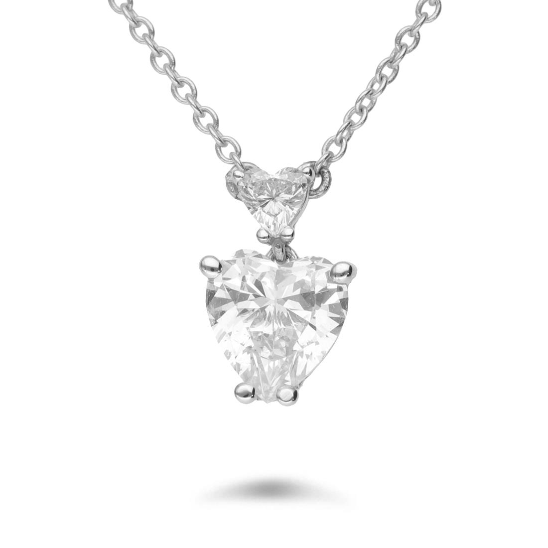 Collana Alfieri & St John con pendente in oro bianco con 2 diamanti taglio cuore ct 1,17 colore g purezza si2. Lunghezza 40 cm. Disponibile certificato igi 4803v