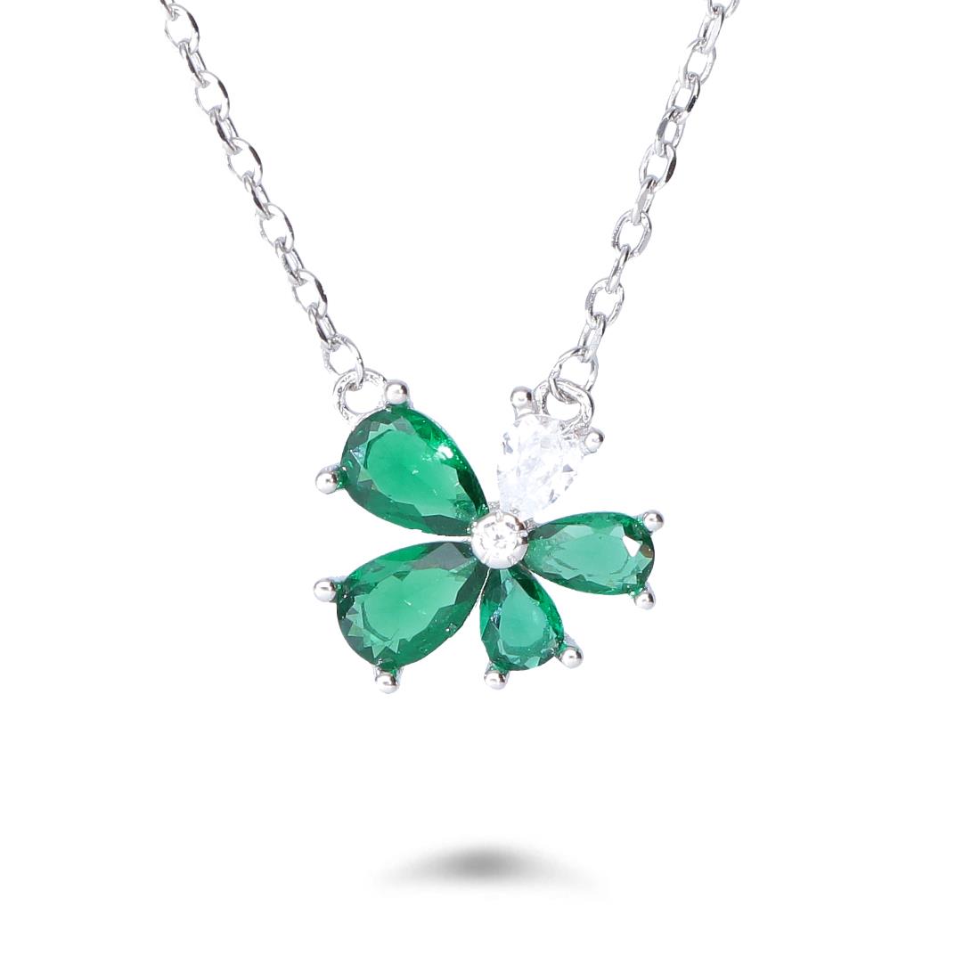 Collana con fiore zirconi bianchi e verdi - ORO&CO 925