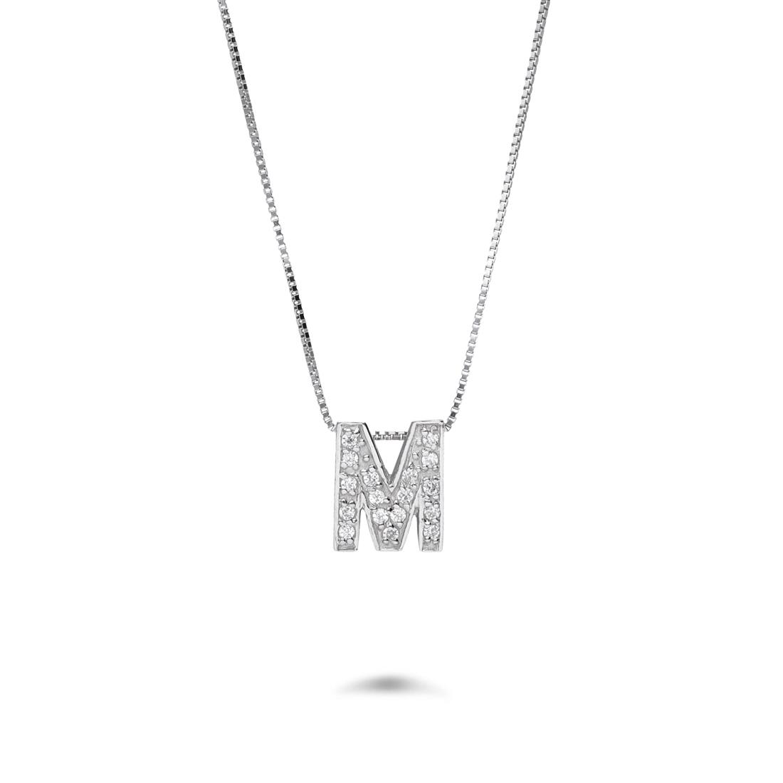Collana Oro&Co 925 in argento con lettera M misura grande con zirconi. Lunghezza 40 cm.