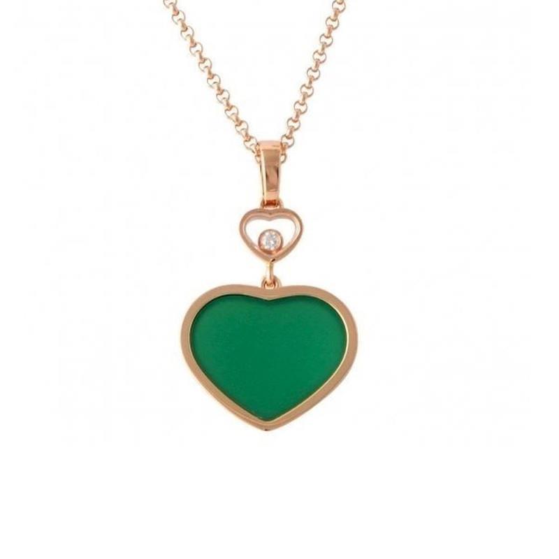 Collana con pendente Happy Hearts in oro rosa con diamante e agata verde - CHOPARD