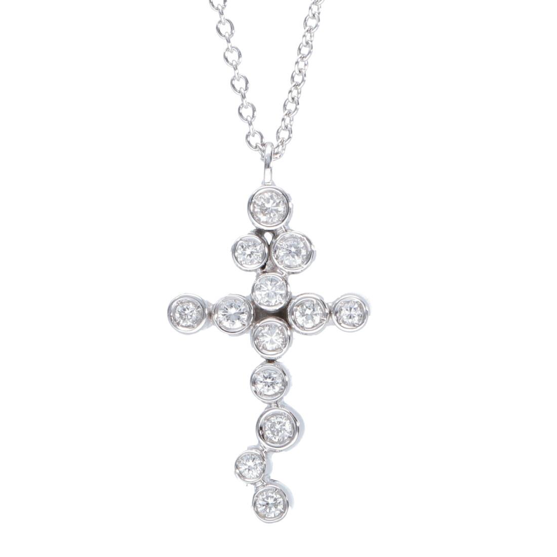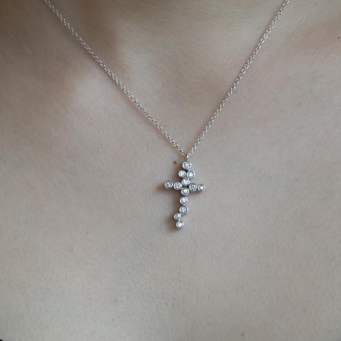Collana con pendente croce in oro bianco e diamanti ct 0.29