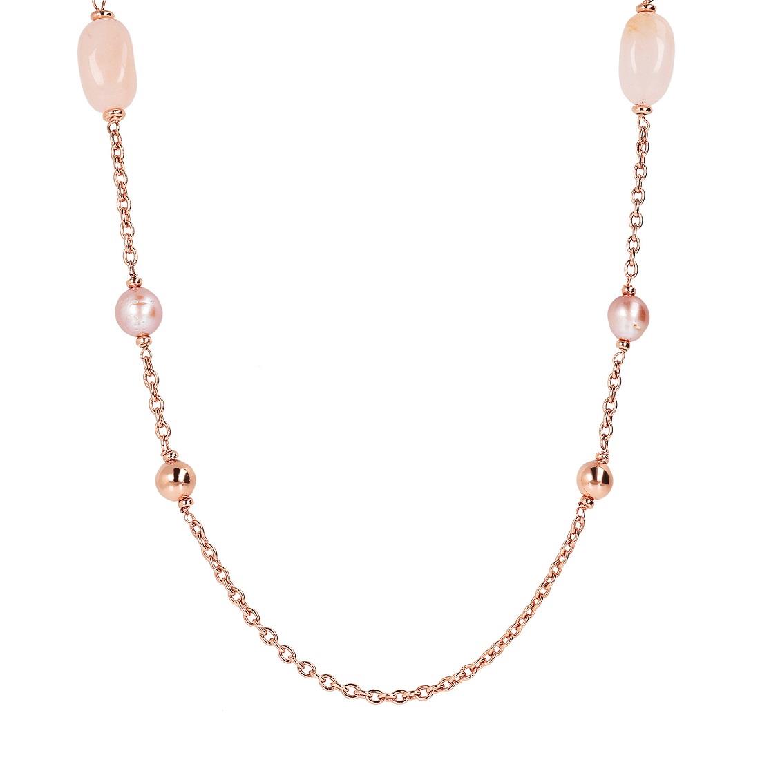 Collana rolò Bronzallure placcata oro rosa 18kt con quarzo rosa e perle coltivate. Lunghezza 86cm