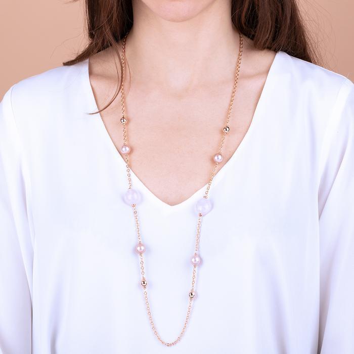 Collana con quarzo rosa e perle - BRONZALLURE