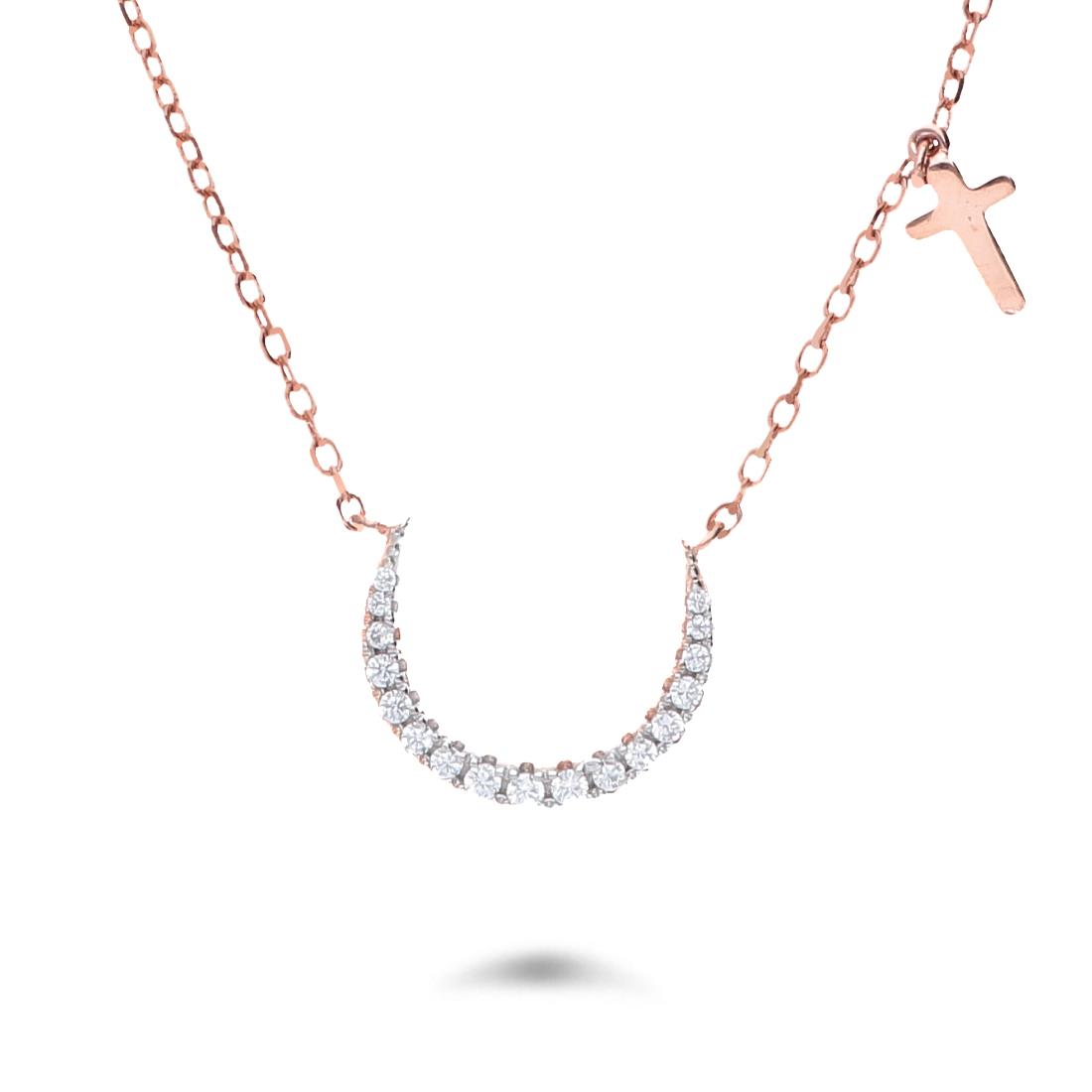 Collana design Oro&Co 925 in argento rosa con zirconi bianchi e croce rosa. Misura 39-42 cm.