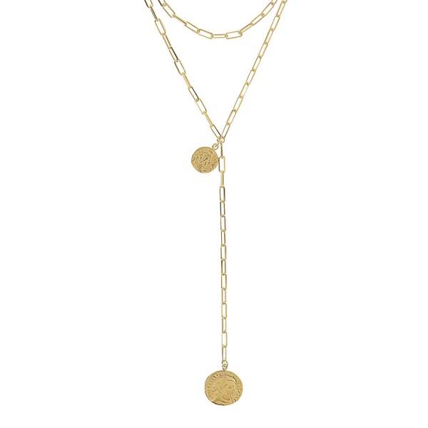 Collana doppia Etrusca in bronzo placcata oro 18kt con moneta e disco martellato