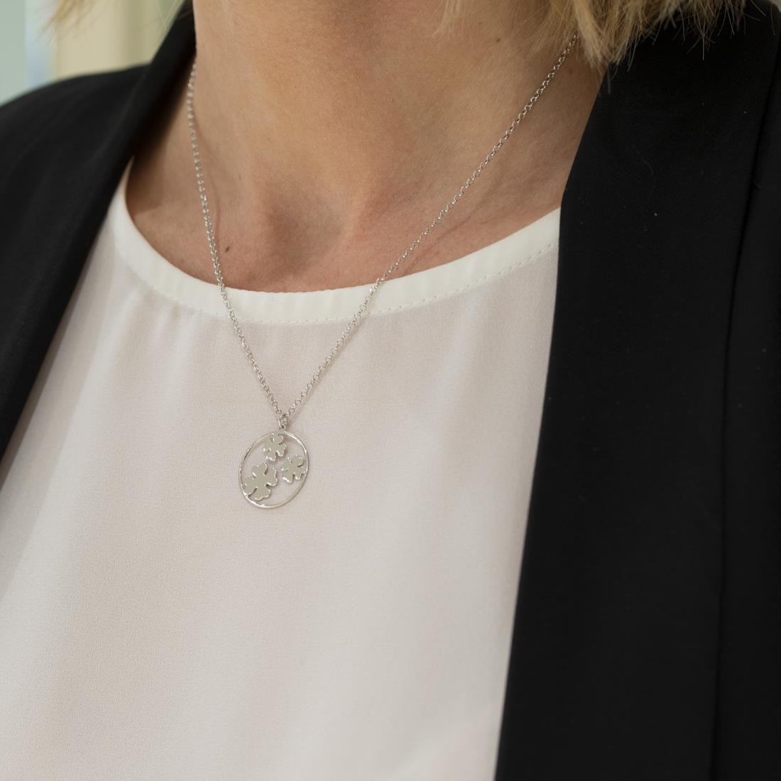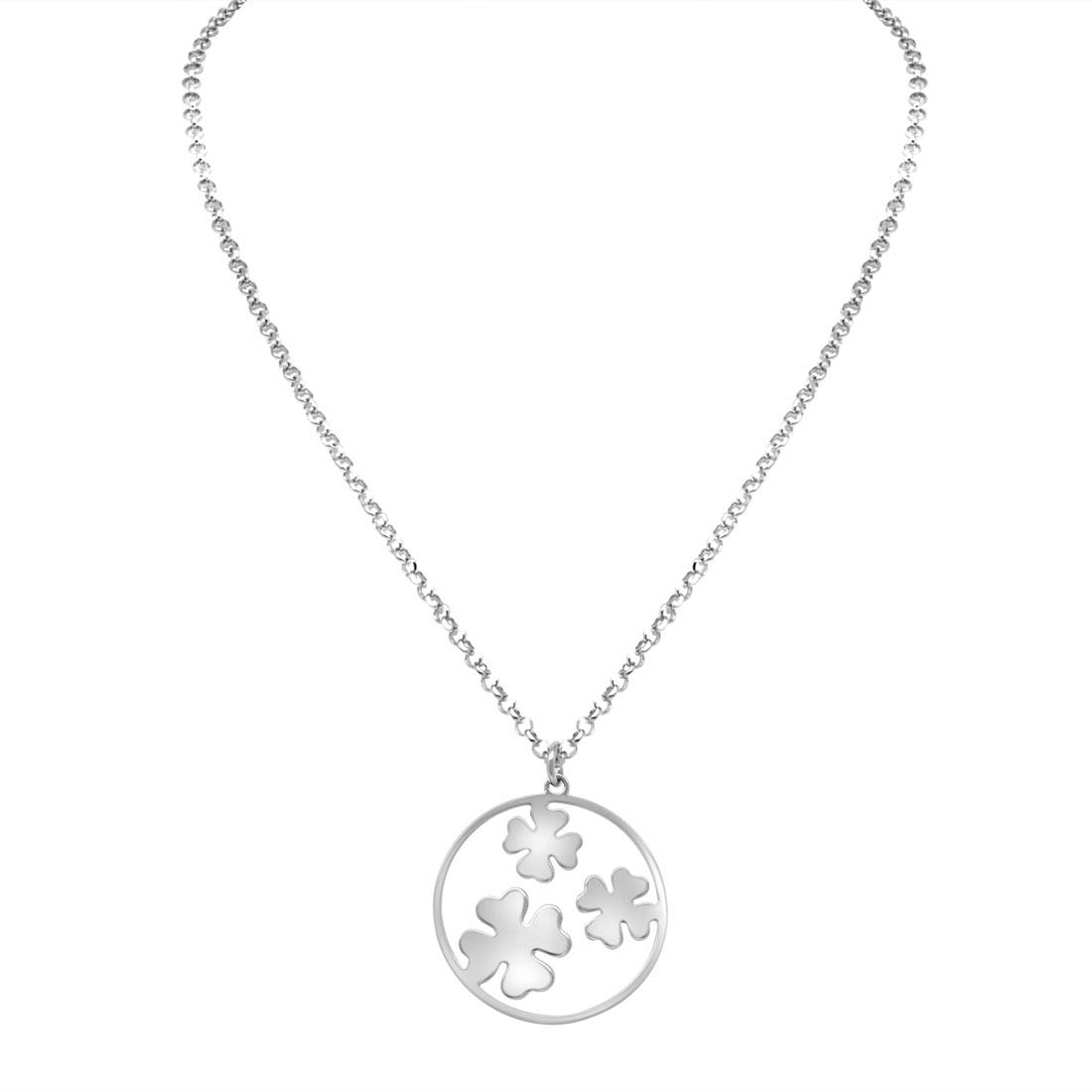 Collana ORO&CO in argento 925, pendente diametro 2 cm tondo con 3 quadrifogli