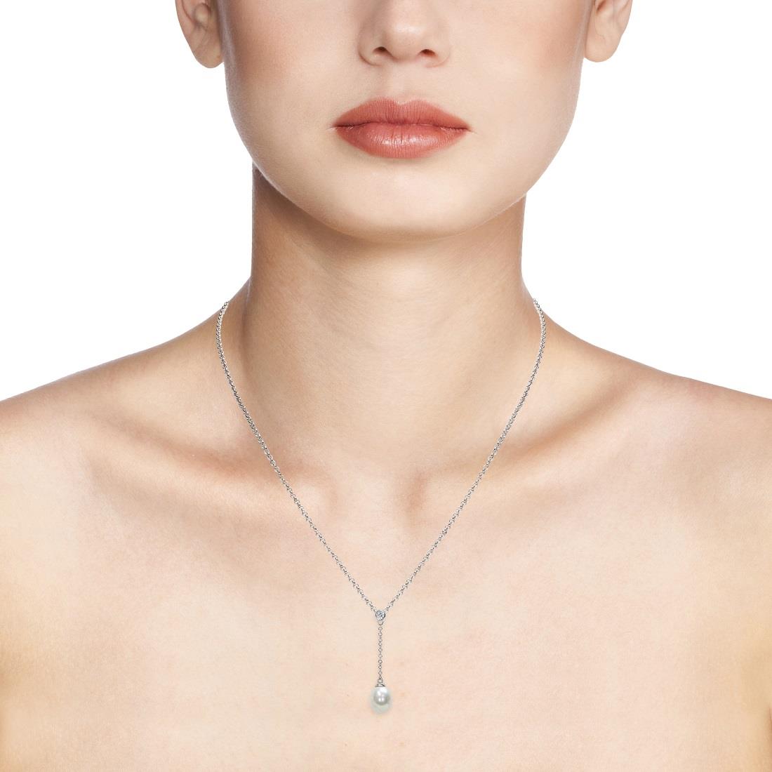 Collana Mayumi in argento 925 con perla d'acqua dolce di diametro 7½x8 mm e zirconi. Lunghezza: 42 cm.
