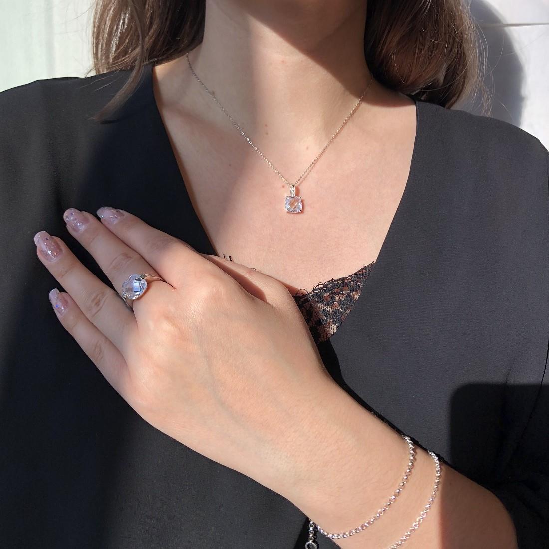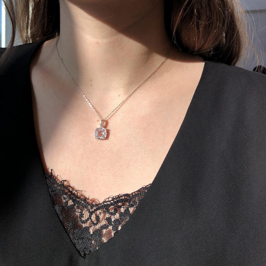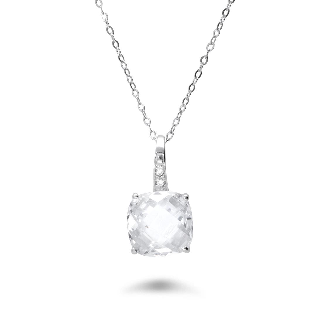 Collana Oro&Co925 in argento con pietra quadrata trasparente. Lunghezza regolabile da 38 a 40 cm.