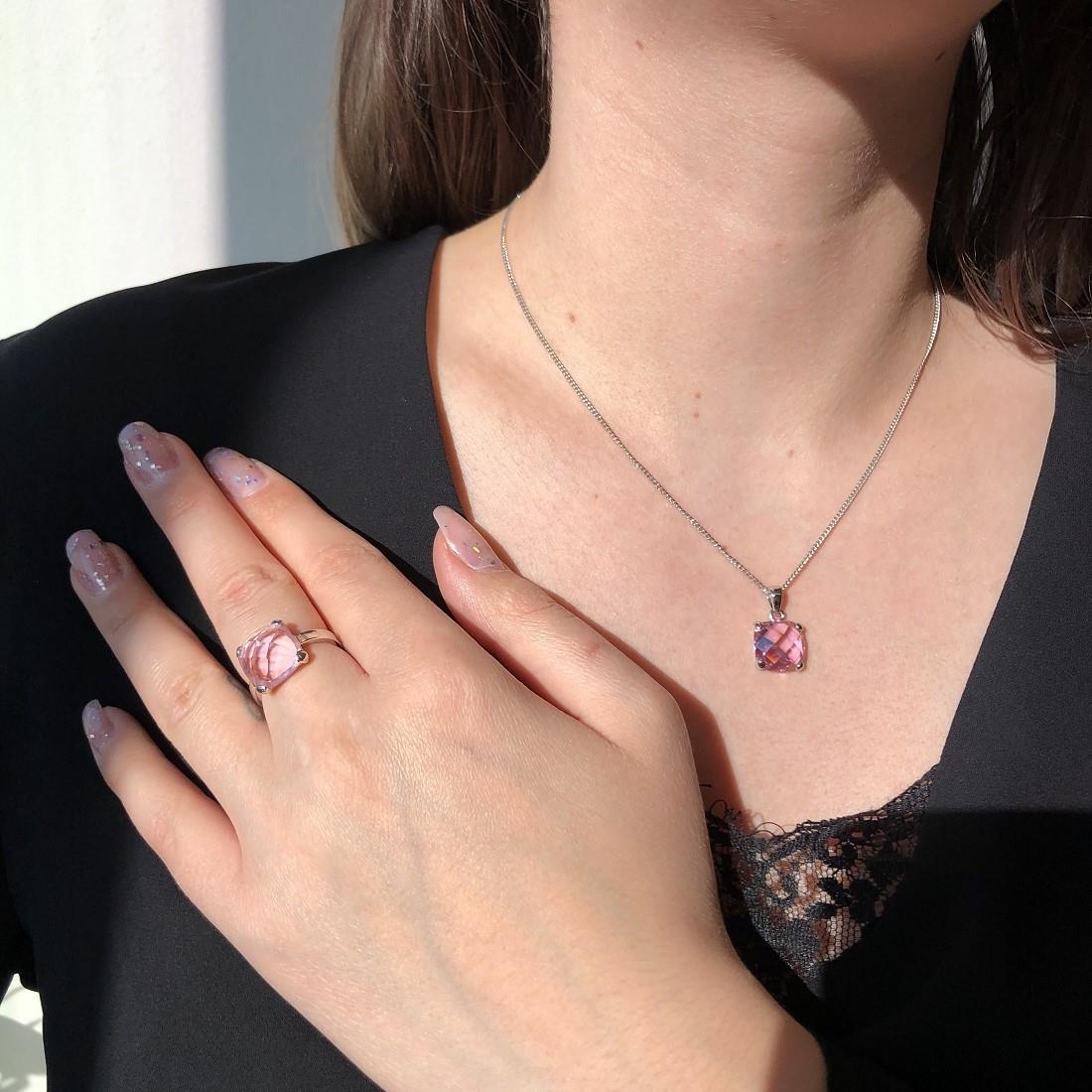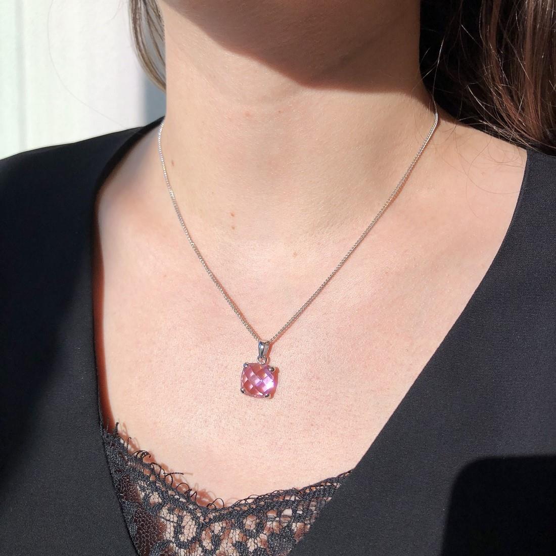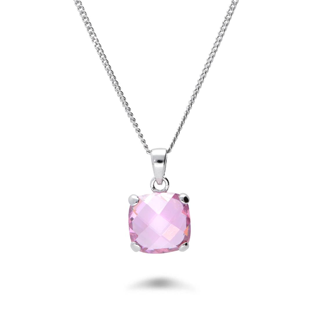 Collana Oro&Co 925 in argento con pietra quadrata rosa. Lunghezza: 40cm.