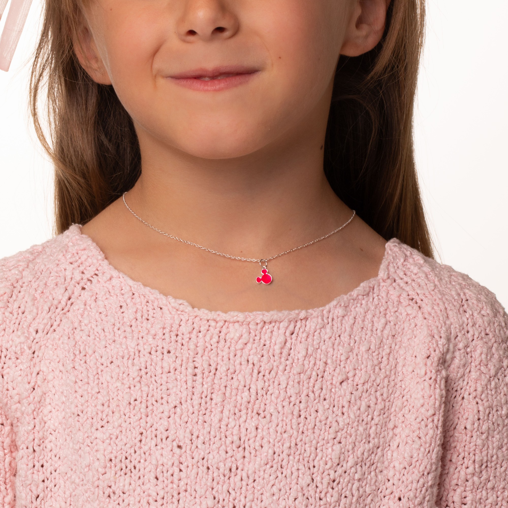 Collana da bambina della collezione Mickey Mouse di Disney. Gioiello in argento 925 e smalto di colore rosa Fluo. Lunghezza: 37+3 CM