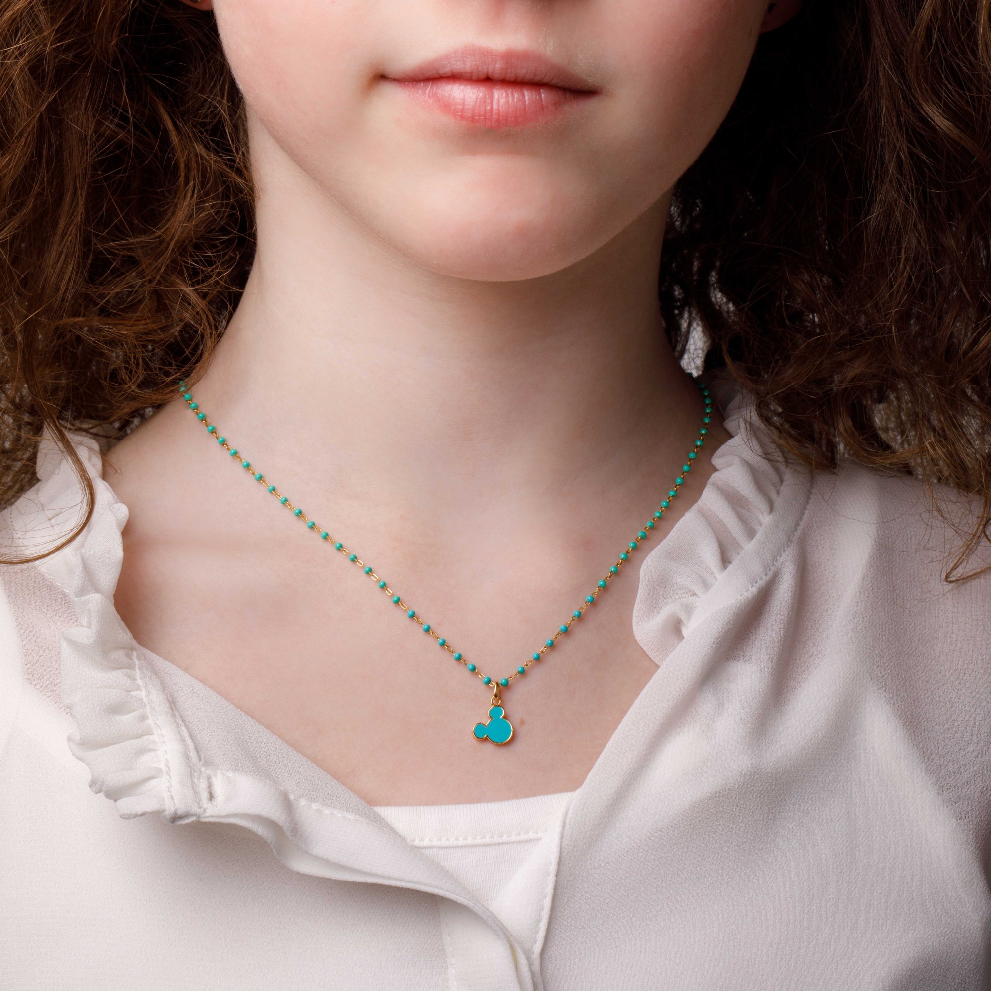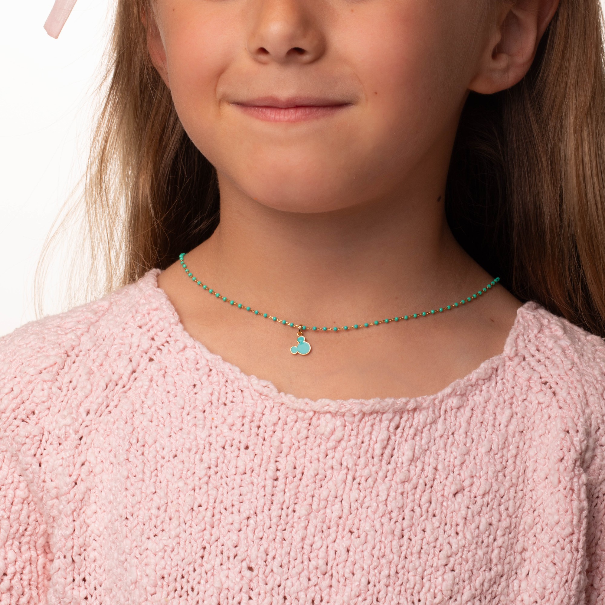 Collana da Bambina della Collezione Mickey Mouse di Disney. Gioiello in argento 925 e smalto di colore blu chiaro. Lunghezza: 37+3 CM