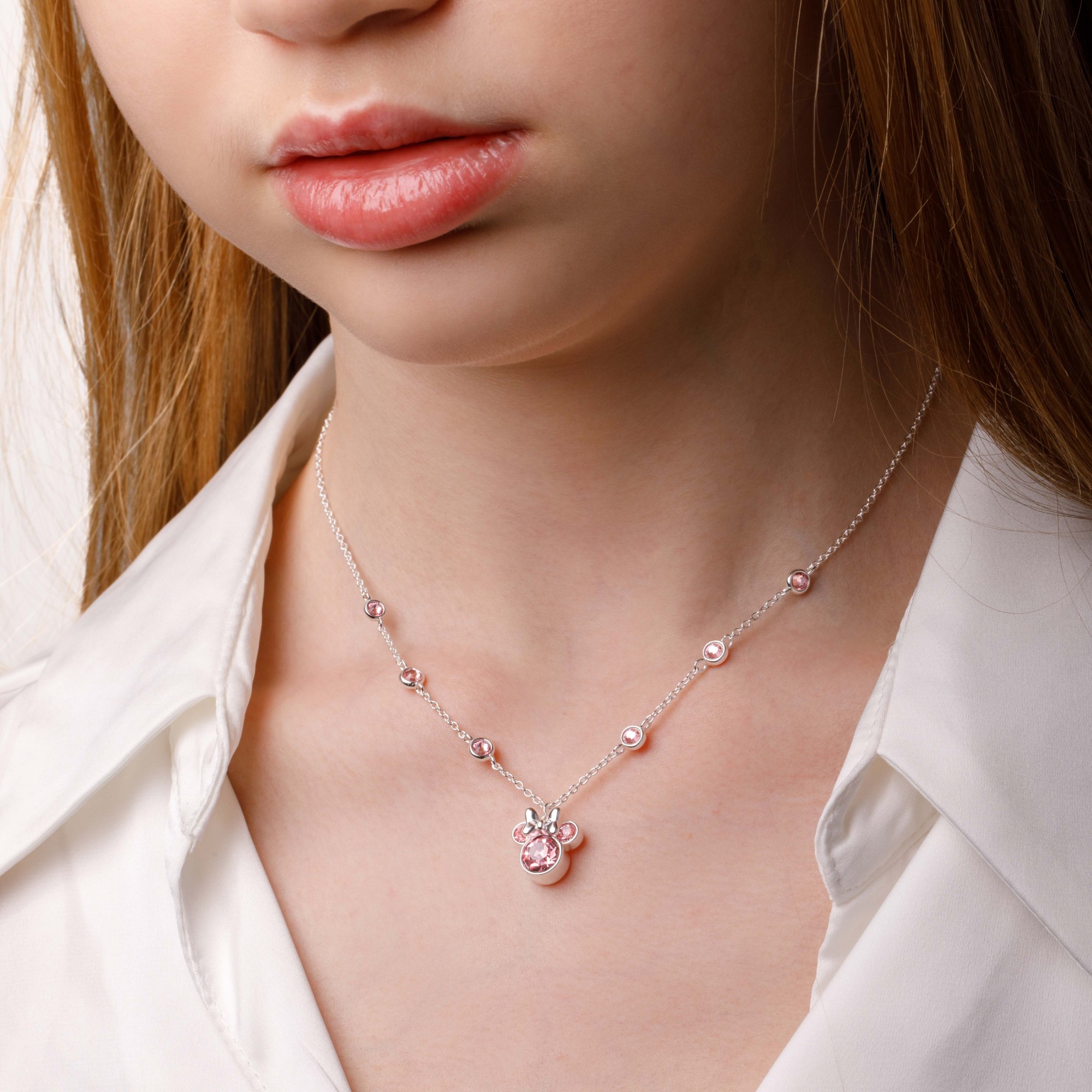 Collana da bambina della collezione Minnie Mouse di Disney. Gioiello in argento 925 e cristallo di colore rosa. Misura: 37+3 CM