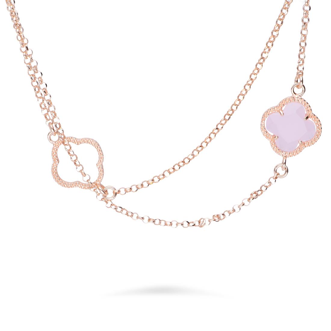 Collana in argento rosato con fiori vuoti e con zirconi rosa - ORO&CO 925