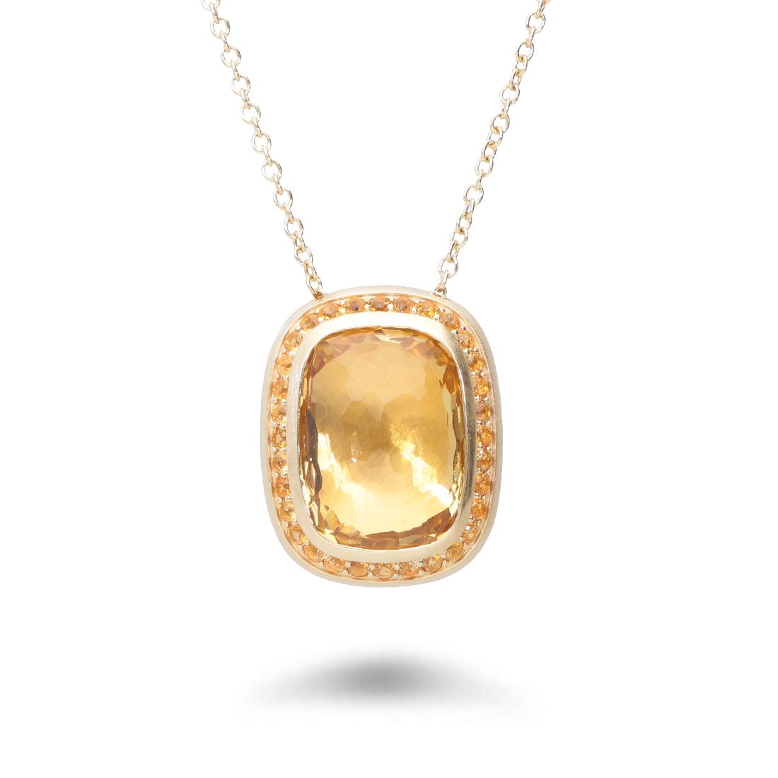 Collana Oro&Co in oro giallo con pendente in quarzo madera taglio sfaccettato. Lunghezza 40 cm
