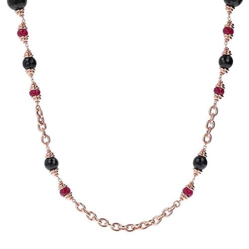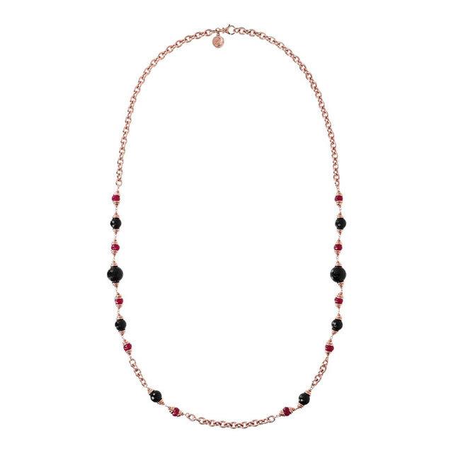 Collana Bronzallure in lega golden rose placcata oro rosa 18 kt con onice tonda sfaccettata, giada. Lunghezza 120 cm