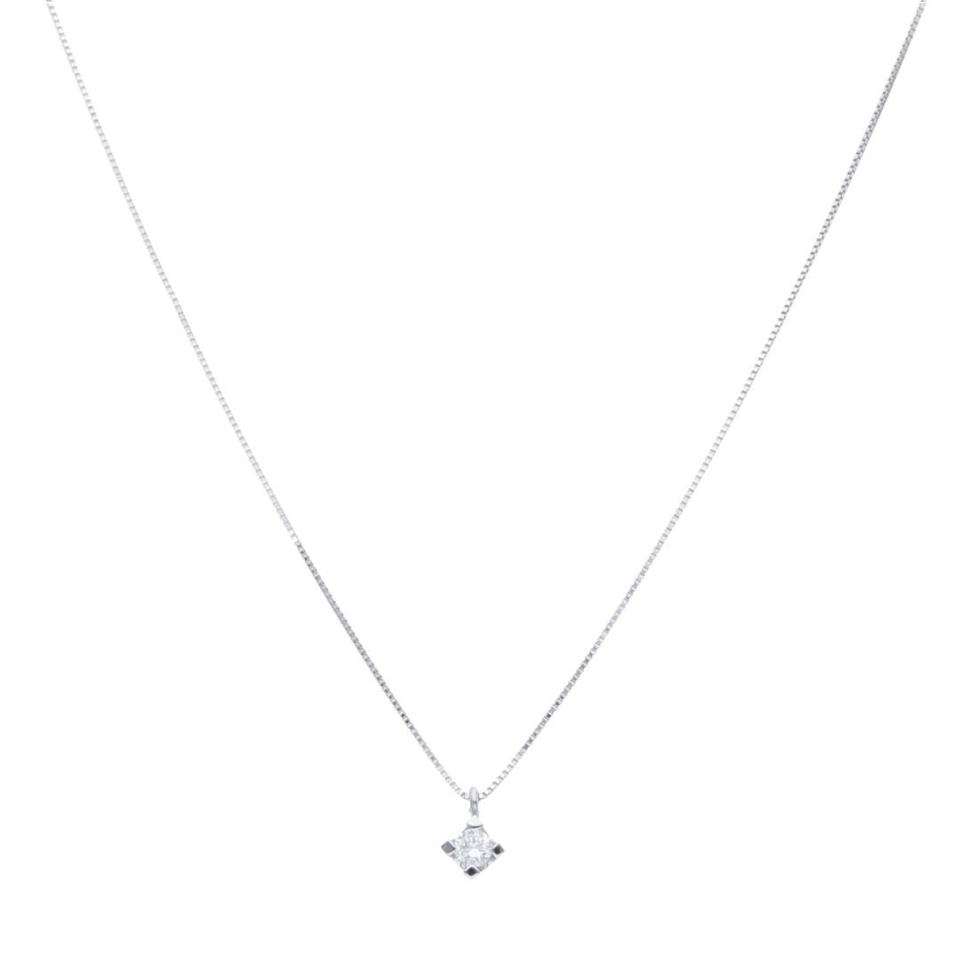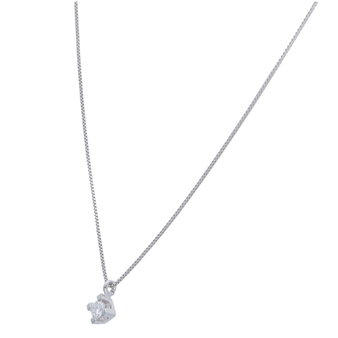 Collana punto luce Alfieri & St John in oro bianco con diamante ct. 0,11 colore G purezza SI1. Misura 42cm