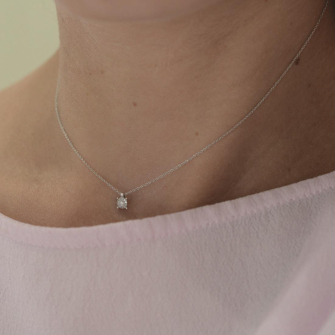 Collana punto luce in oro bianco con diamate ct. 0,05
