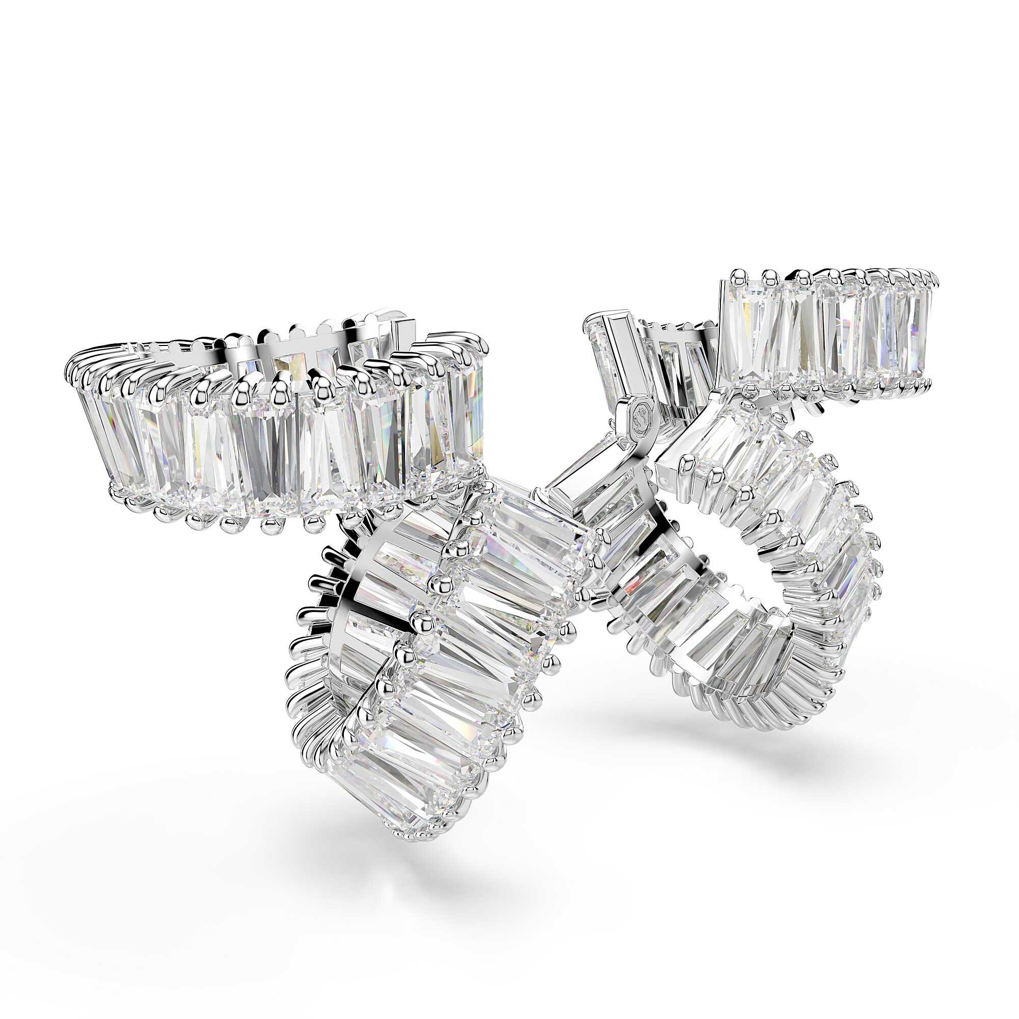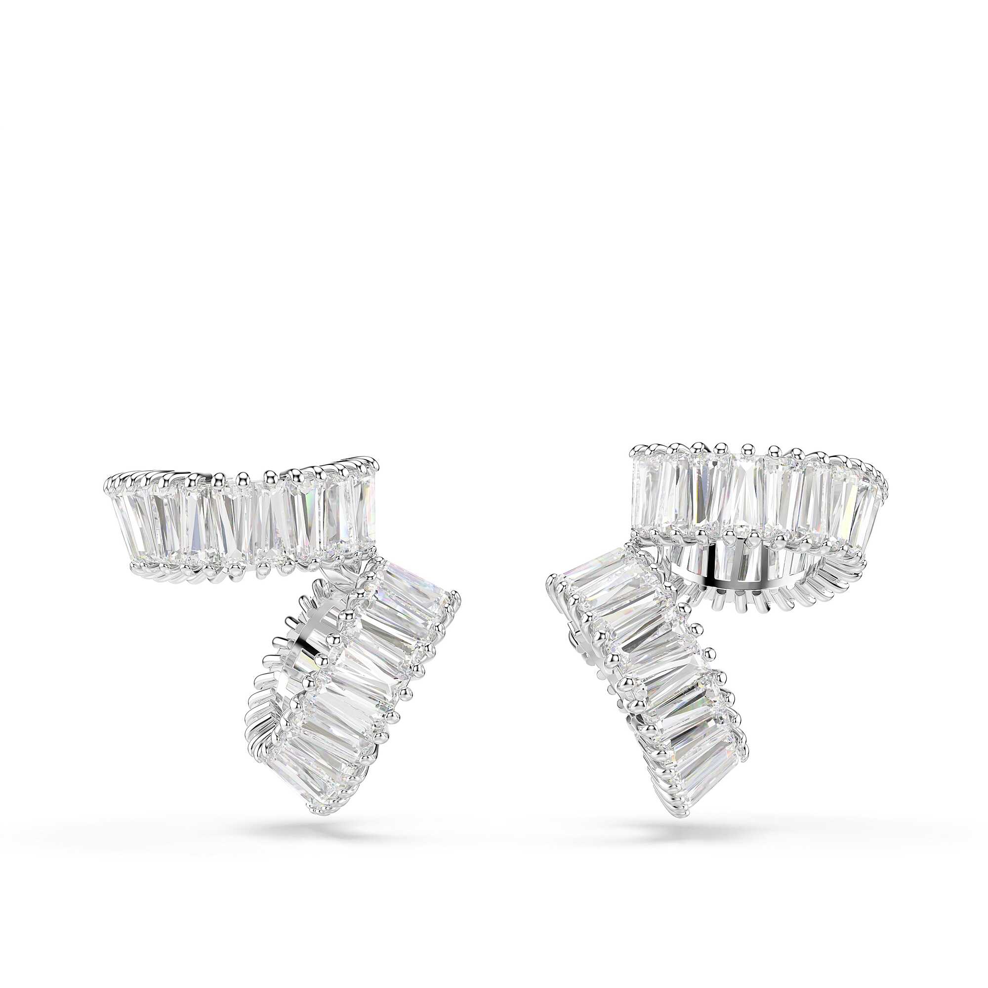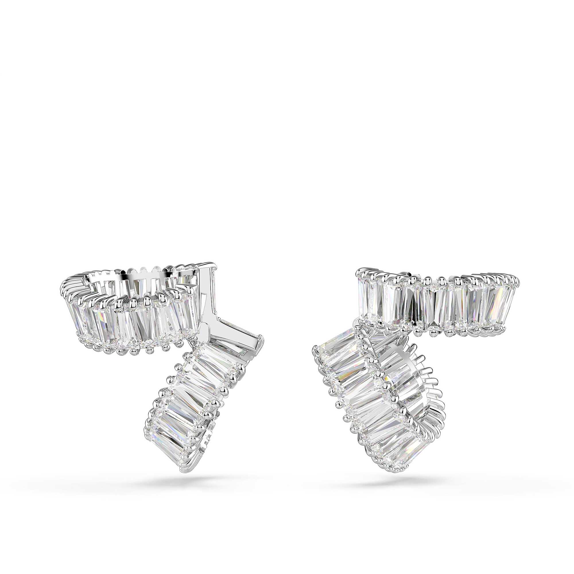 Earcuff da donna di Swarovski della collezione Ariana Grande x Swarovski, placcati in rodio con Swarovski Zirconia trasparenti con taglio Baguette. Dimensioni: 1.9 x 1.8 cm.
