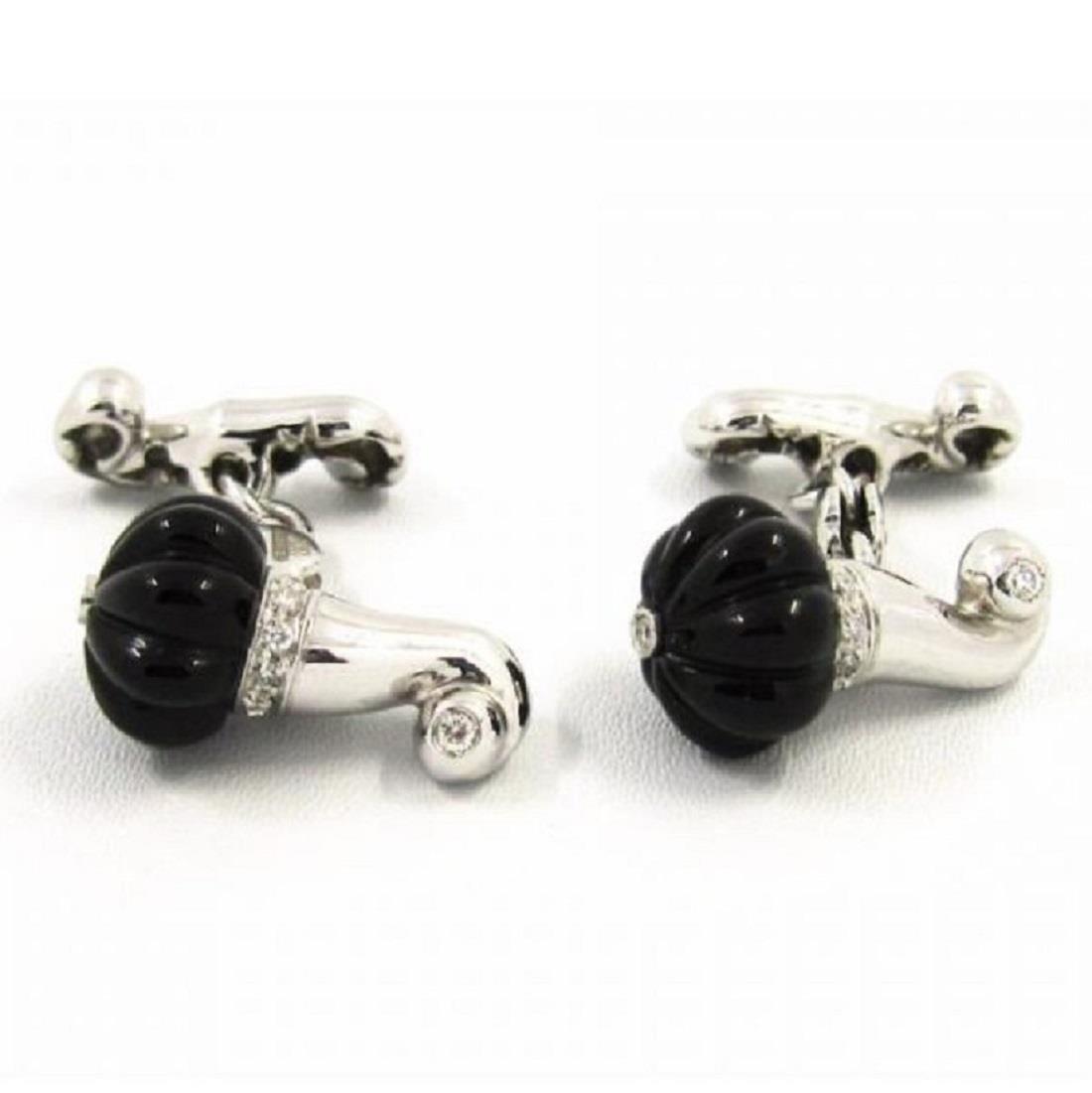 Gemelli Chantecler collezione corni in oro bianco con onice nera