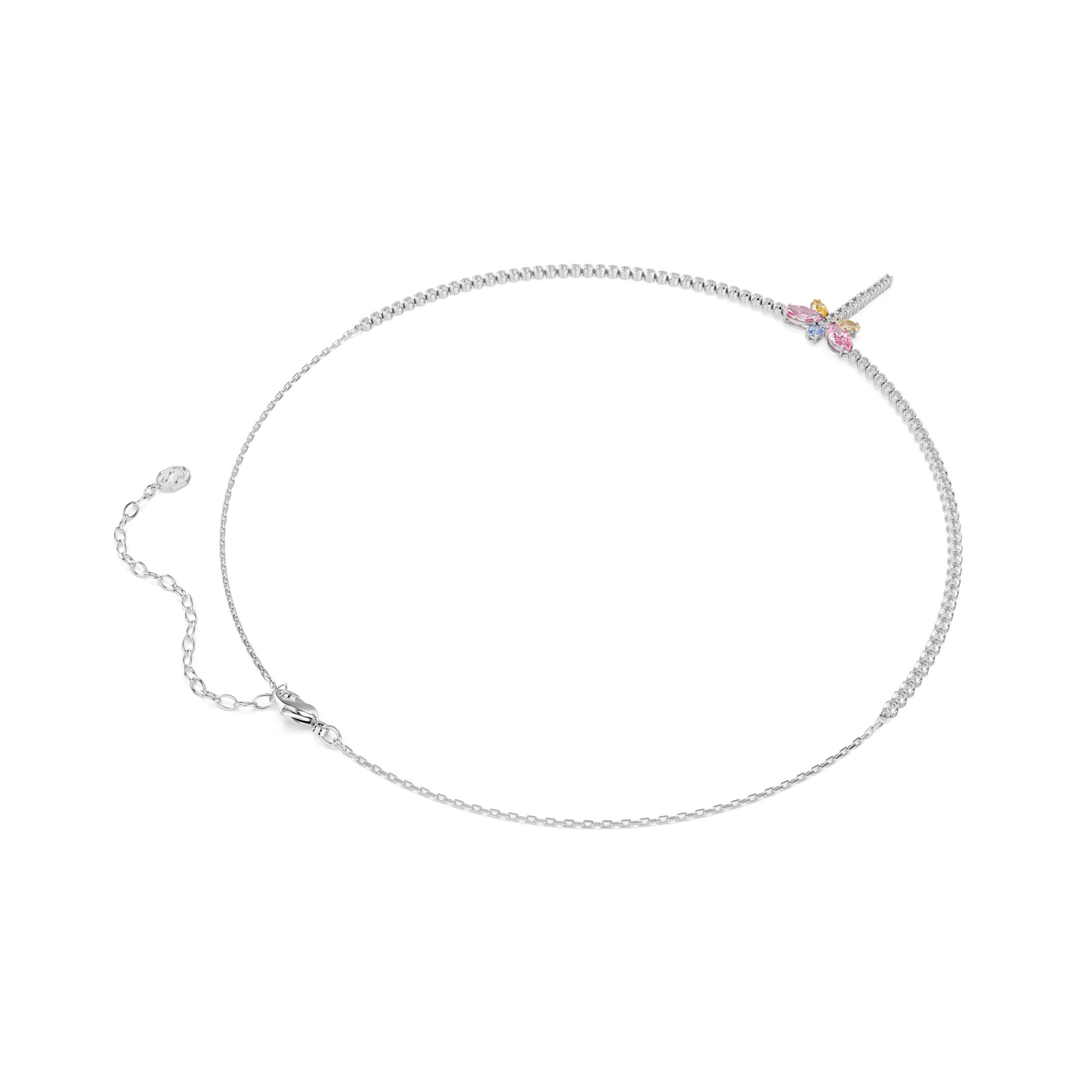 Collana da donna di Swarovski della collezione Ariana Grande X Swarovski. Cubic zirconia multicolore dal taglio misto illuminano la libellula con riflessi vibranti, amplificati dalla placcatura rodio. Lunghezza (minima - massima): 30 - 44 cm, Dimensione decorazione: 2.6 x 1.7 cm. La referenza è: 5737425.