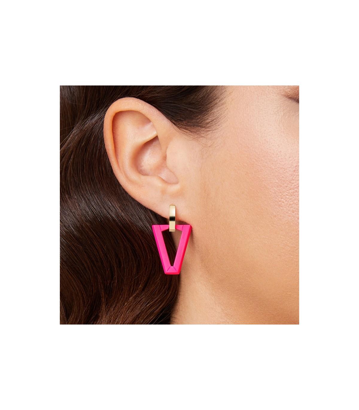 Mono orecchino donna pendente in argento placcato oro Valentina Ferragni Uali con smaltatura rosa fluo