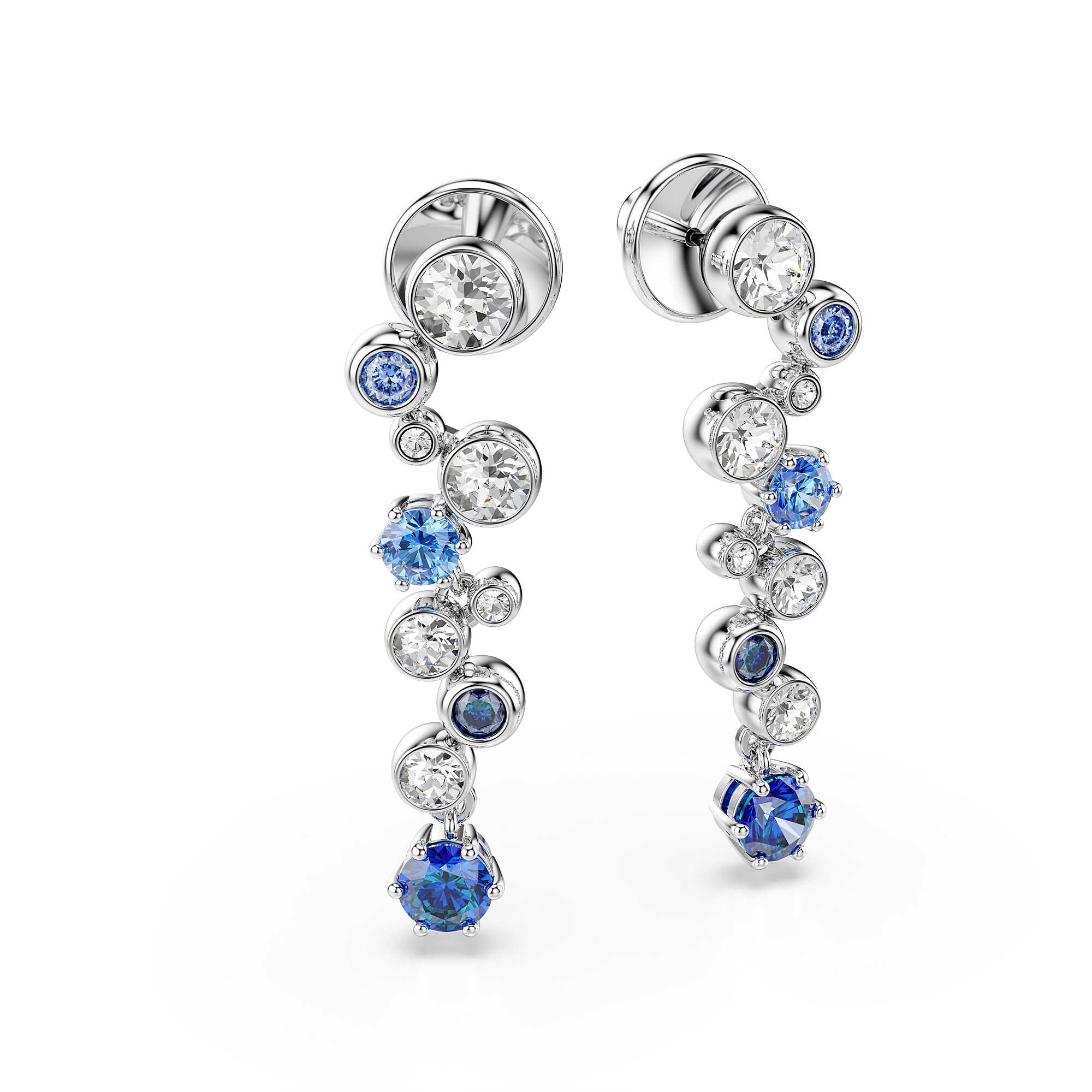 Orecchini da donna Swarovski della collezione Constella, placcati in rodio blu e arricchiti da Swarovski Zirconia blu a taglio misto. Questi orecchini, ispirati a un cielo stellato, offrono una vivace espressione personale. I fili placcati rodio presentano cristalli Cry e Swarovski Zirconia in diverse dimensioni e tonalità, ciascuno con montatura a griffe o a castone. Perfetti da abbinare alla collana Constella coordinata per amplificare luce e colore nel look.