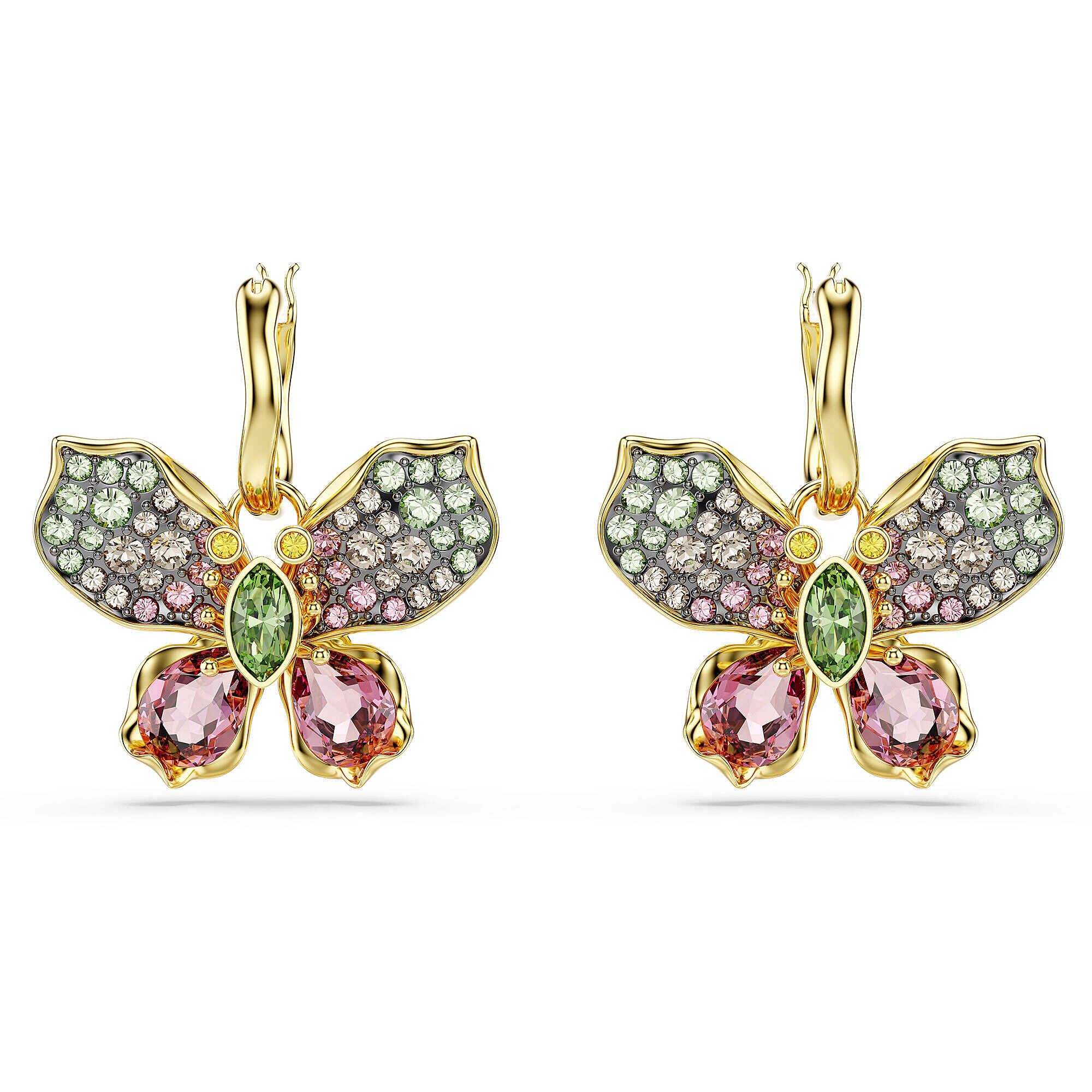 Orecchini da donna di Swarovski della collezione Idyllia. Questa splendida coppia di farfalle donerà un tocco di gioia a qualsiasi outfit. Ciascun orecchino a buco è decorato con una varietà di cristalli di forme e colori diversi, con le tecniche di pavé, Pointiage™ e chatonnage di Swarovski che offrono una finitura lussuosa e precisa. Indossali insieme a un pendente coordinato per esaltare la magia di Idyllia. Dimensione: 2.4 x 2.1 cm. La referenza è 5709953