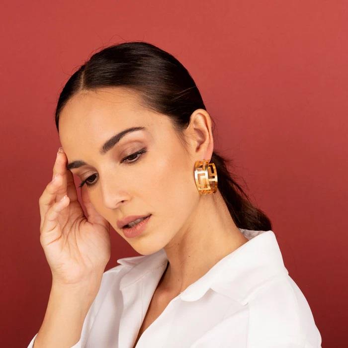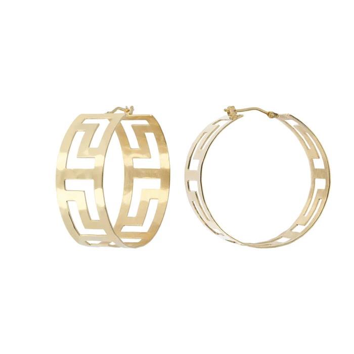 Orecchini Etrusca a cerchio con greca placcati in oro avvolgente 18 carati per un look deciso e femminile