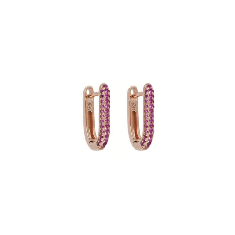 Orecchini a cerchio in argento trattamento pvd oro rosa Cuori Milano Ultra Cherry con zirconi rossi