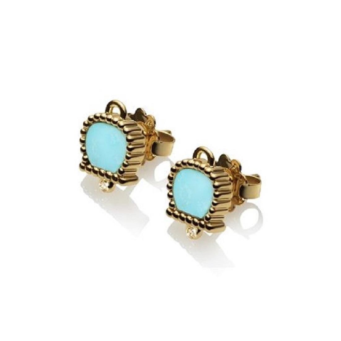 Orecchini Chantecler collezione Anima 70 a lobo in oro giallo 18kt con turchese e diamanti 0,01 ct