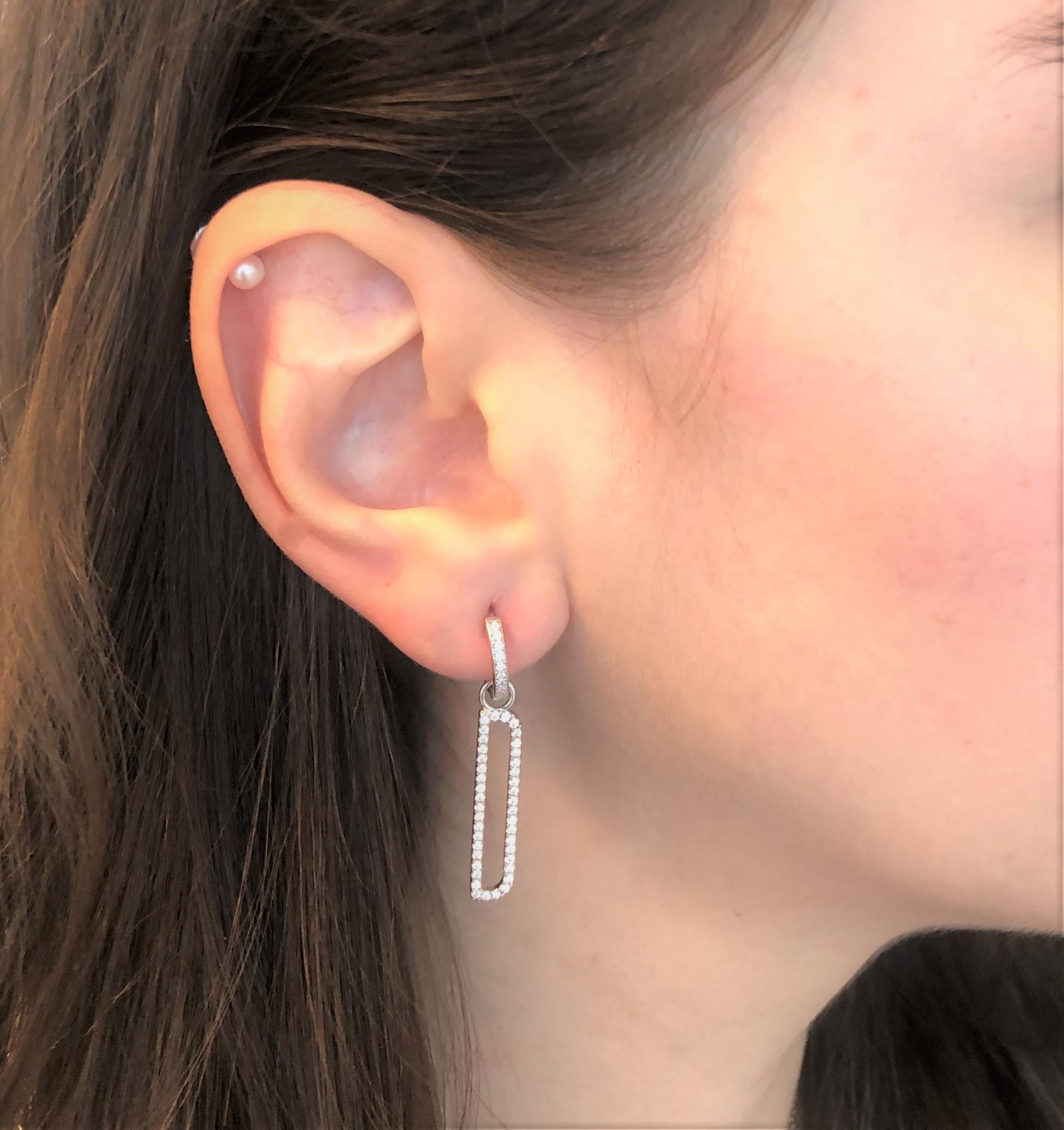 Orecchini pendenti lettera D in argento con zirconi bianchi