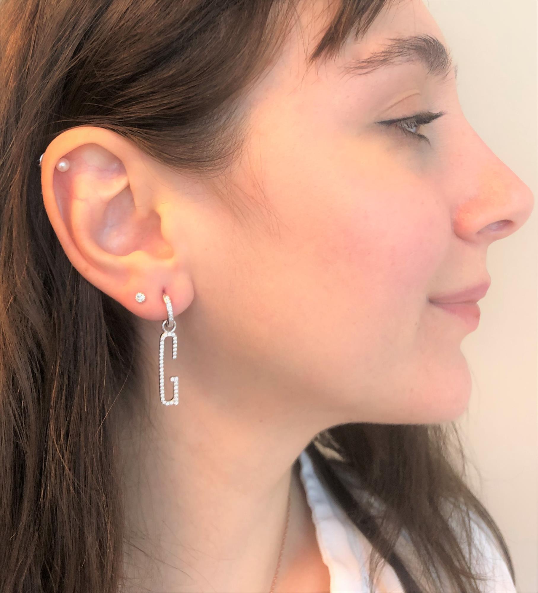 Orecchini con lettera "G" in argento con zirconi - CUORI MILANO