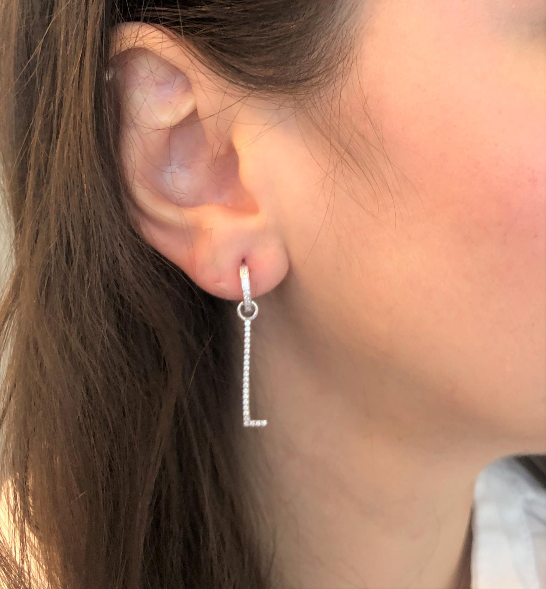 Orecchini pendenti lettera L in argento con zirconi bianchi